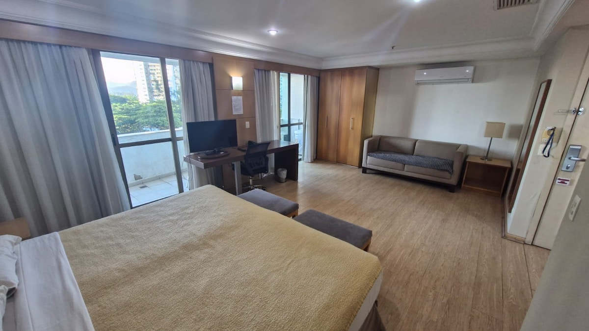 Hospedagem cheia de charme, de alto padrão, acomoda confortavelmente até 4 pessoas. Apto novíssimo e moderno, (quarto com cama Queen, banheiro, ampla sala com sofá-cama e cozinha aberta equipadíssima), em frente à praia da Barra da Tijuca. Toda a infra de um Apart-Hotel, na Av. Lucio Costa e a 100 metros dos sofisticados bares e restaurantes e da agitada vida noturna do centro gastronômico da Olegário Maciel. O melhor lugar do Rio de Janeiro, cercado de muita diversão para toda família.