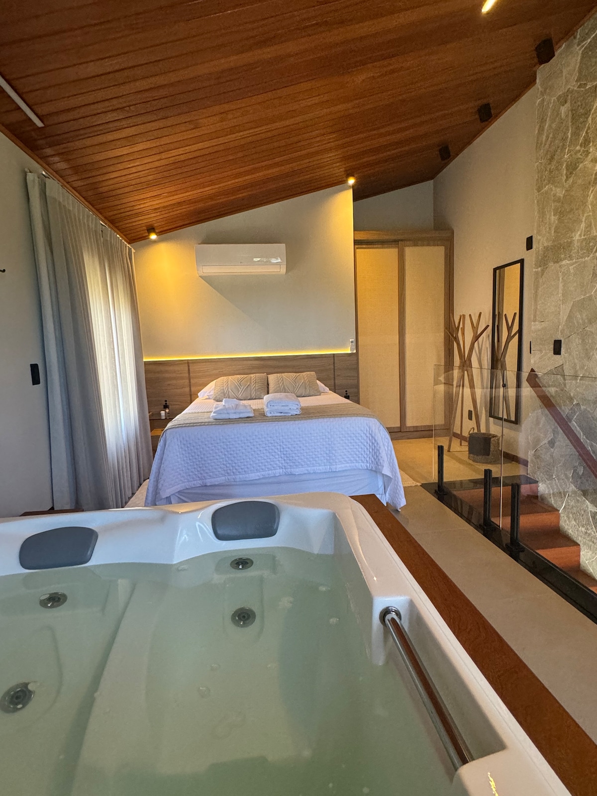 Se você busca um refúgio para relaxar em meio à natureza, o Chalet Aloha foi cuidadosamente projetado para tornar sua experiência inesquecível. ◦ Pet Friendly, 100% cercado com jardim privativo ◦ Wi-Fi veloz e Office space ◦ Cozinha totalmente equipada ◦ Churrasqueira Grill coberta ◦ Jardim privativo cercado Localizado no Condomínio Maranata II, estamos 5 minutos de carro das paradisíacas Praia do Ouvidor e Rosa Norte e em frente à SURFLAND BRASIL. Venha viver momentos únicos no paraíso.