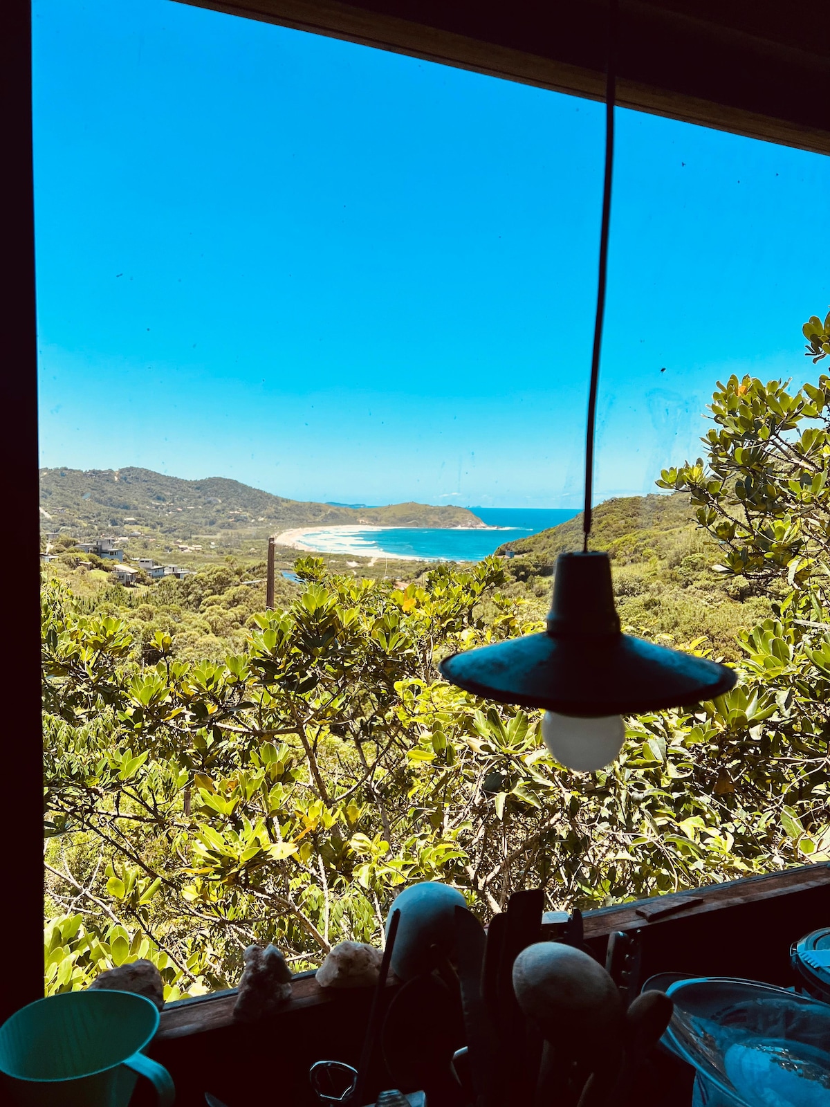 Desperte com o nascer do sol na cama, ao som das ondas e o canto dos pássaros! Na natureza exuberante na praia da praia da Silveira , uma das mais belas de Garopaba, e preferida dos surfistas. O ambiente rústico e aconchegante foi pensado para oferecer conforto com arte e harmonia. Wi-fi rápido, espaço home office Cenario perfeito para aqueles que buscam viver um romance, descanso em total conexão com o mar e a natureza. Localizado há 2km do centro de Garopaba, e 300 metros da praia!