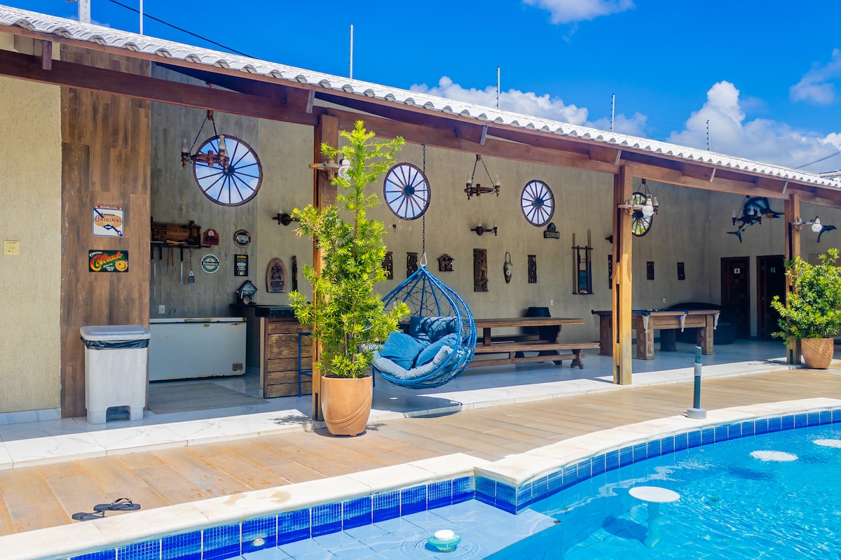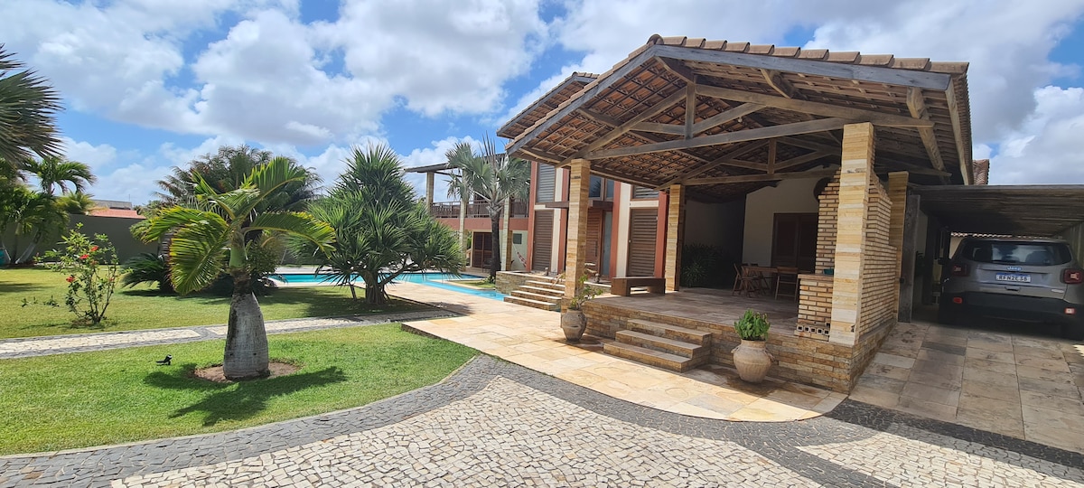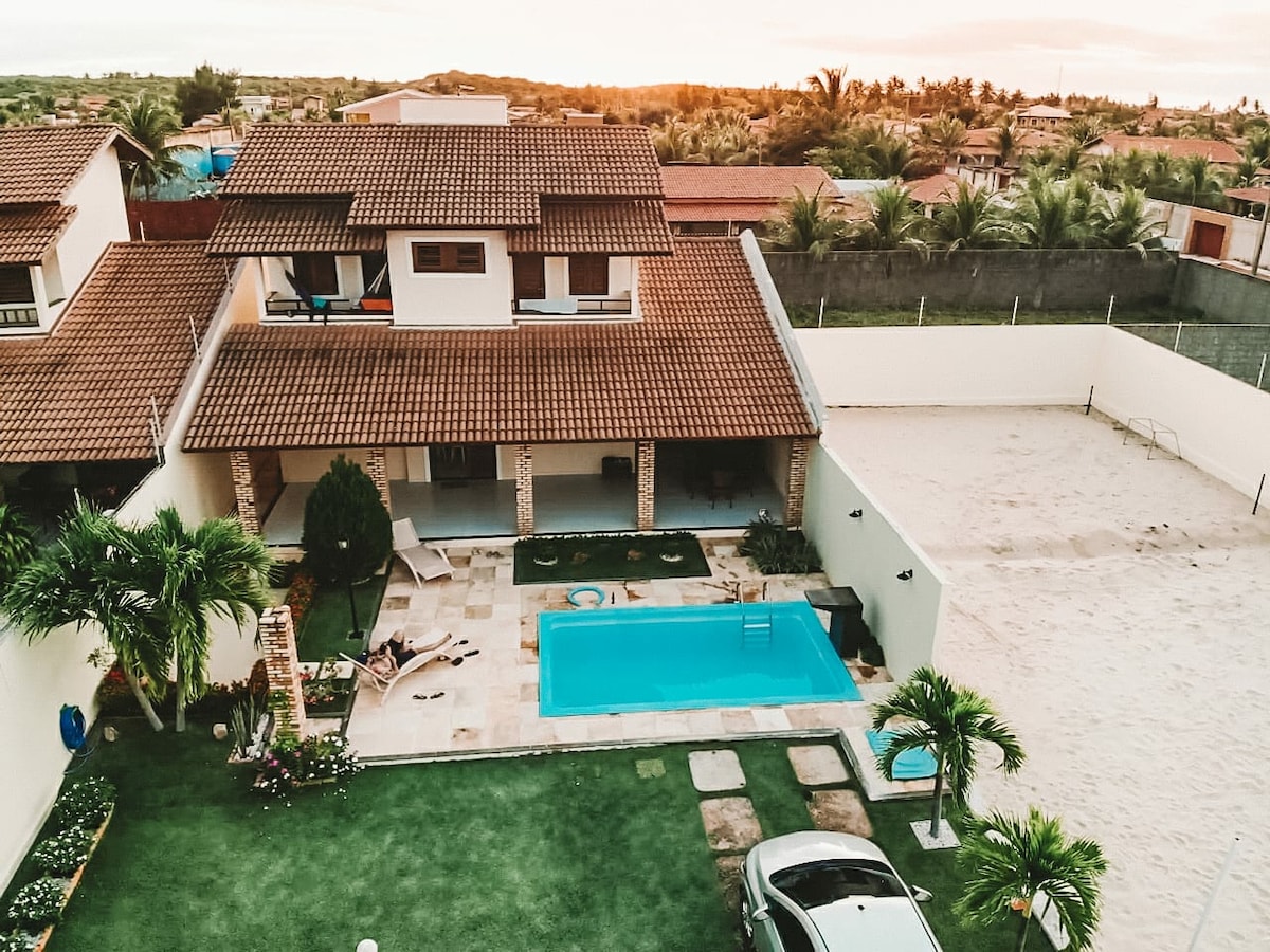 Enjoy your own private paradise on the beach! Our yard is landscaped with fruit tress, a grassy area and a swimming pool that invites relaxation. The home is spacious, well-maintained, and equipped with all you need to have a memorable stay. Conveniently located at the division of the beaches of Caponga and Aguas Belas, the house is a 5-min walk from the ocean and less than a 5-min drive to the picturesque meeting of the waters, a local attraction.