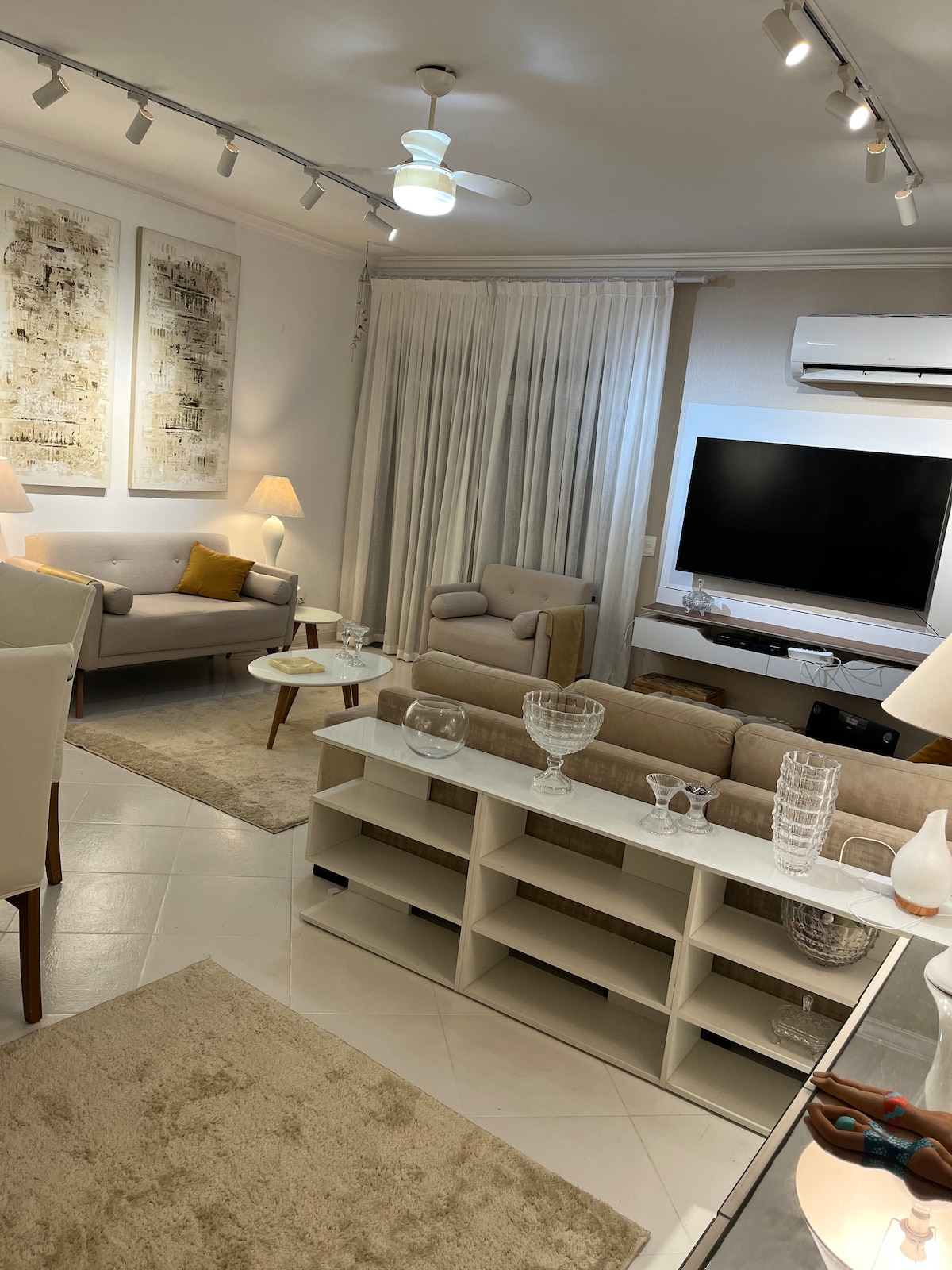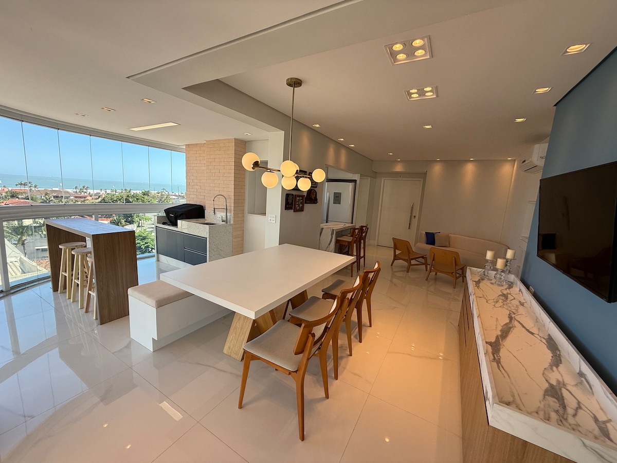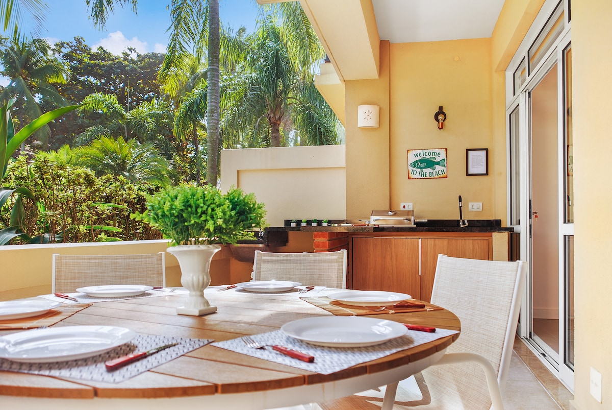 Feel as you were in a ship, only 1h from São Paulo city: sounds of waves, birds and a spectacular landscape with sea view and sea turtles. Located in a sophisticated condo with exuberant nature, in the best beach in Guarujá. The apartment counts with a big balcony for the living room and bedrooms, and is prepared to offer a unique experience either to relax and/or work -- high speed wi-fi, air conditioning, smartTVs and home office. Sea view swimming pools, gym, barbecue space. Beach service.