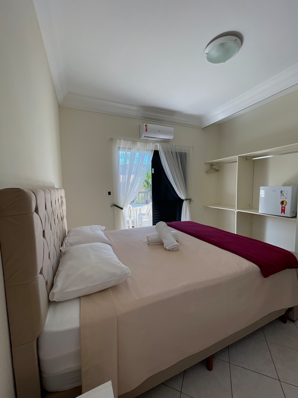 A acomodação oferece uma cama de casal, banheiro privativo, ar-condicionado, TV Led 24', frigobar, e roupa de cama e banho (toalhas para praia/piscina não são inclusas). Wifi está disponível nas áreas comuns e no quarto.