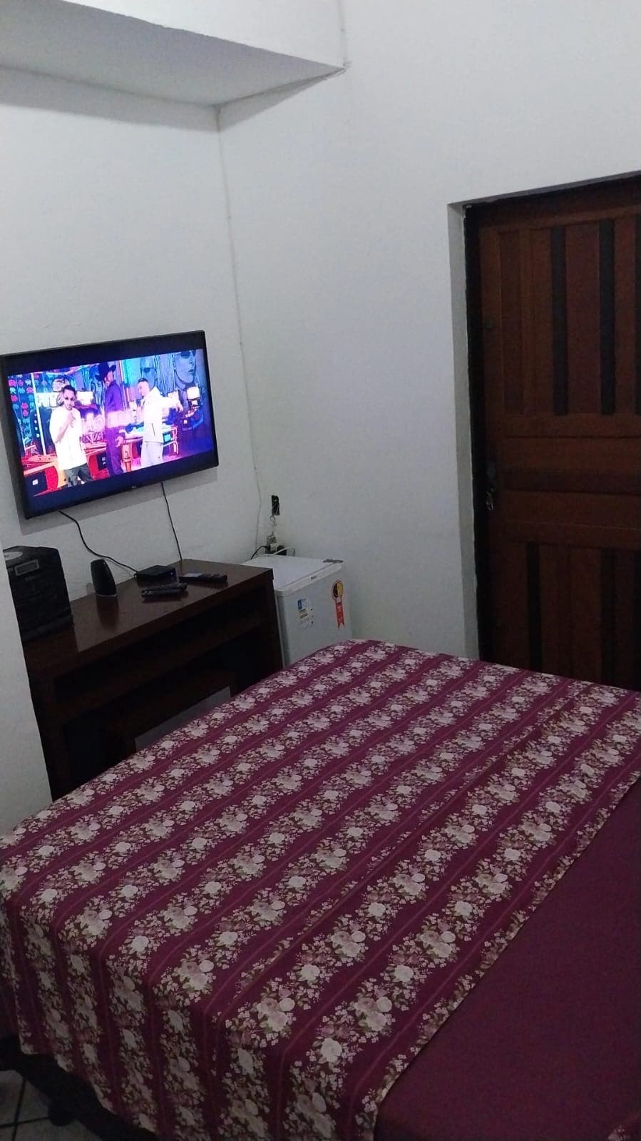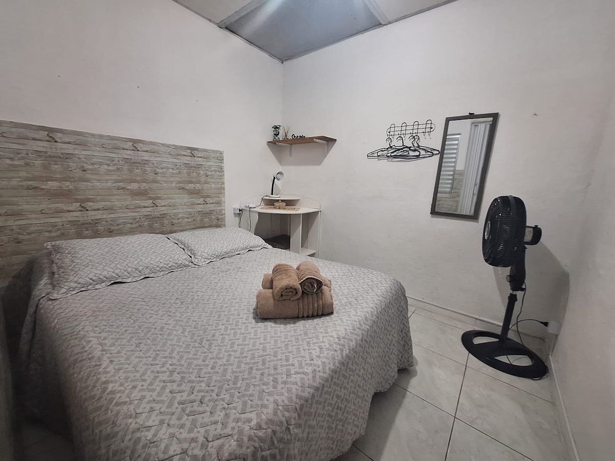 * Horário de checkin flexível porém a partir da entrada a diária são 24 horas. *Kitnet ideal para quem quer ter um espaço para banho, refeição e descanso noturno. *Colchão e travesseiros protegidos por capas, que são higienizados após cada checkout. *SEM VAGA DE GARAGEM PARA CARRO no interior do imóvel, pode estacionar na frente da casa. *VAGA PARA MOTO Cama com colchão de casal conta com sofá cama 2 lugares na sala para acomodar terceiro hóspede extra