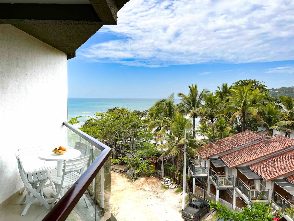 Apartamento novo/reformado, com vista incrível para o mar na melhor localização de Ubatuba. Perto de tudo e ao mesmo tempo em meio a natureza. 1 quarto com cama de casal e vista para o mar Sala integrada com a cozinha Piscina no condomínio. Ar condicionado Wi-fi rápido de 200mb Vaga de garagem Portaria 24h Fica na Prainha do Matarazzo e a 5 minutos da Praia do Perequê-Açu. Moderno e com uma vista paradisíaca. Por estarmos próximos ao Café de La Musique, pode ter barulho nos finais de semana.