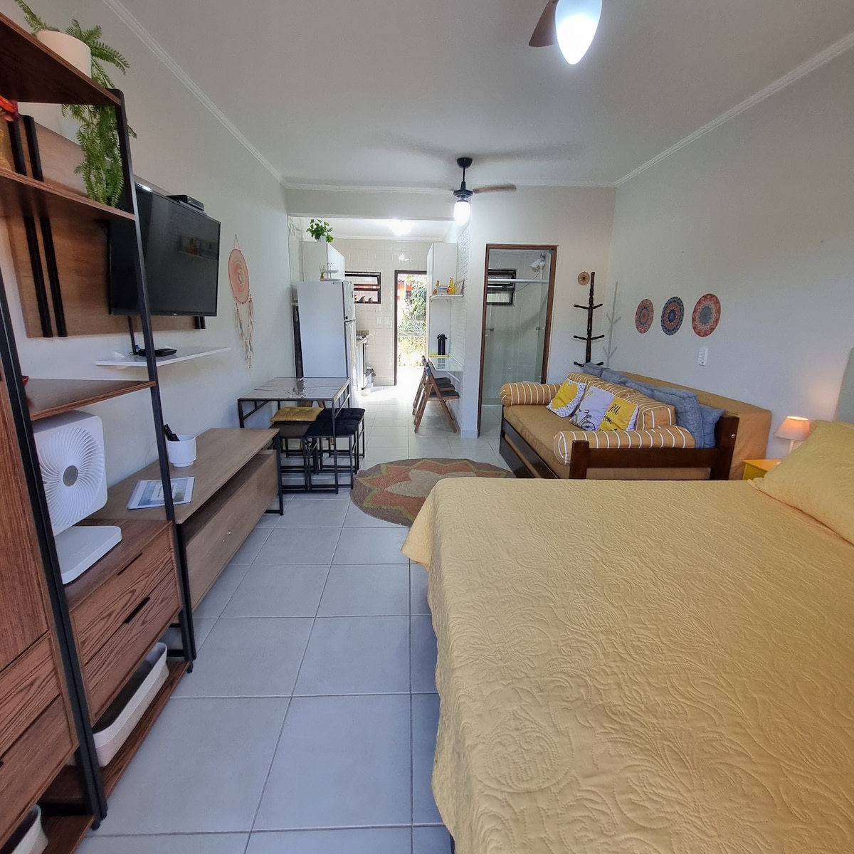Nosso lugar é novo e pensado para criar um ambiente relaxante para os hóspedes! Temos cadeiras de praia, cooler, utensílios para churrasco, cozinha completa e streaming nas TVs para você curtir o máximo sua viagem! Estamos a 300m da praia de Perequê Mirim, 750m da praia de Santa Rita (via trilha) e 900m da Enseada. O centro de Ubatuba está a 15-20min de carro. A região também conta com diversos restaurantes e conveniências próximas, sendo possível fazer tudo a pé!