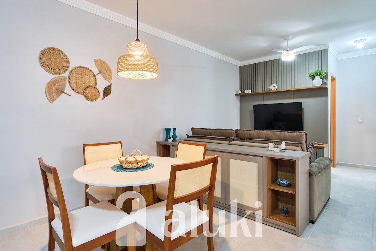 Condomínio pé na areia, ideal para família. Seguro e tranquilo, apto com 01 quarto (1cama queen e 2 sofás cama, cozinha completa com purificador de água, 1 banheiro e varanda. Ar condicionado e TV no quarto e sala. Sacada e quarto com vista para o mar. Condomínio com piscina, sala de TV, WI FI, estacionamento coberto (vaga para 01 carro), 2 portarias com segurança 24 horas, acessibilidade. Restaurante com serviço não incluso na diária. Obrigatório uso pulseira identificação.