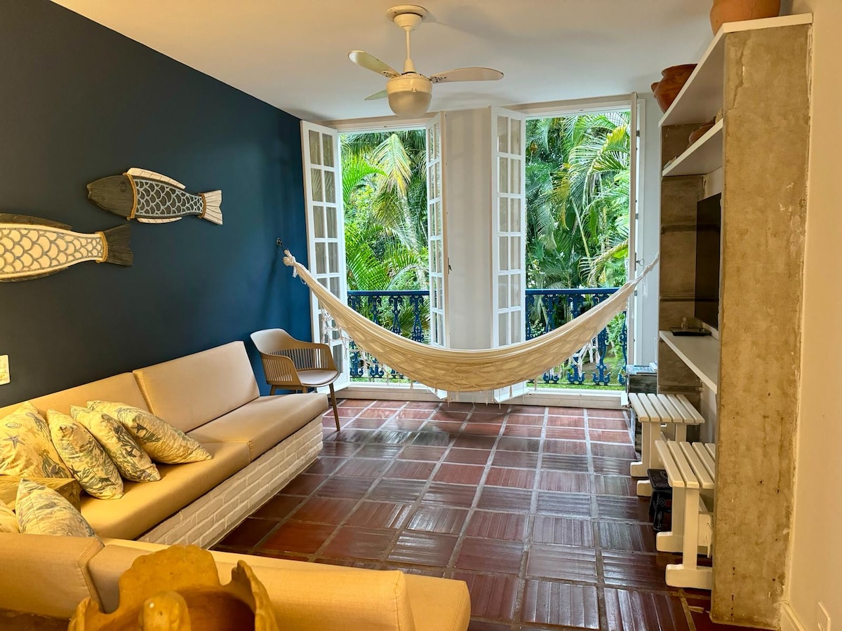 Charmosos estúdios self catering na linda praia do Prumirim. Entrada independente, pátio privado, cozinha totalmente equipada, cama queen size de alta qualidade, sala de estar confortável. Tudo projetado com qualidade, conforto e estilo. Grandes janelas panorâmicas que vão fazer você se sentir entre as copas das árvores! Este é um lugar mágico para quem procura uma fuga romântica à beira-mar conectando-se à natureza sem comprometer seu conforto. Tudo meticulosamente limpo, sanitizado e seguro!