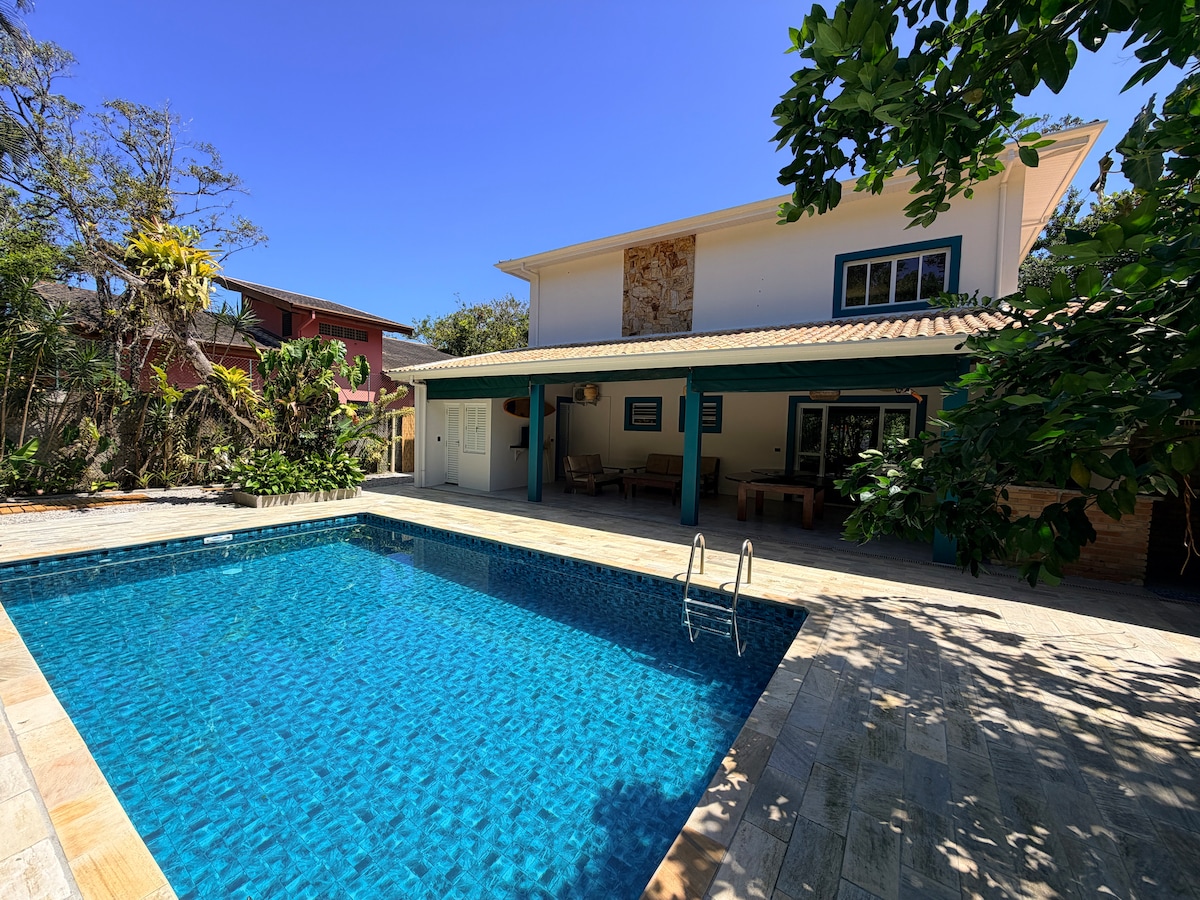 Casa pé-na-areia, muito arejada, teto alto e "portas-duplas" em todos os cômodos, grande jardim de frente para o mar e fantástica vista! Acesso privativo ao canto mais valorizado da praia. Perfeito para famílias com crianças. Nossa casa tem 172mts2, acomodando 10 pessoas em 2 quartos, sendo 1 suite grande, banheiro/lavabo, sala de TV com sofá cama e cozinha americana, integrada a sala externa e ampla varanda gourmet de frente para a praia, lavanderia e estacionamento num terreno de 1200mts2.