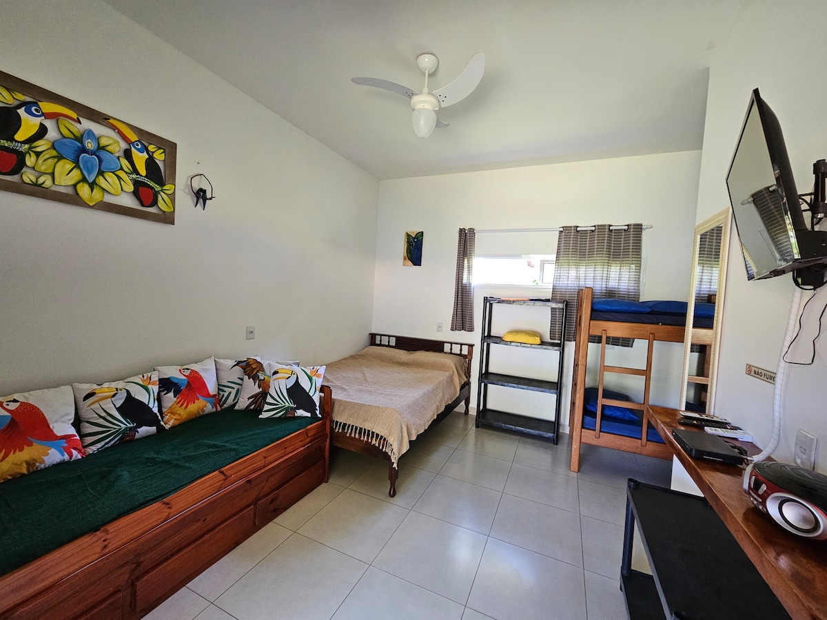 Nossa casa está em um condomínio intimo e bem verde. Ela propiciou momentos inesquecíveis para nossa família. Há alguns anos, decidimos abrir as portas para compartilhar essa experiência, e mais do que uma locação confortável, esperamos que vocês desfrutem muito esses dias tão planejados, e criem memórias que guardem por muito tempo! Para simplificar sua viagem, as camas estarão prontas e as tolhas de banho e rosto sobre elas: não precisa levar nada pois tb temos mantas, se esfriar! Aproveitem