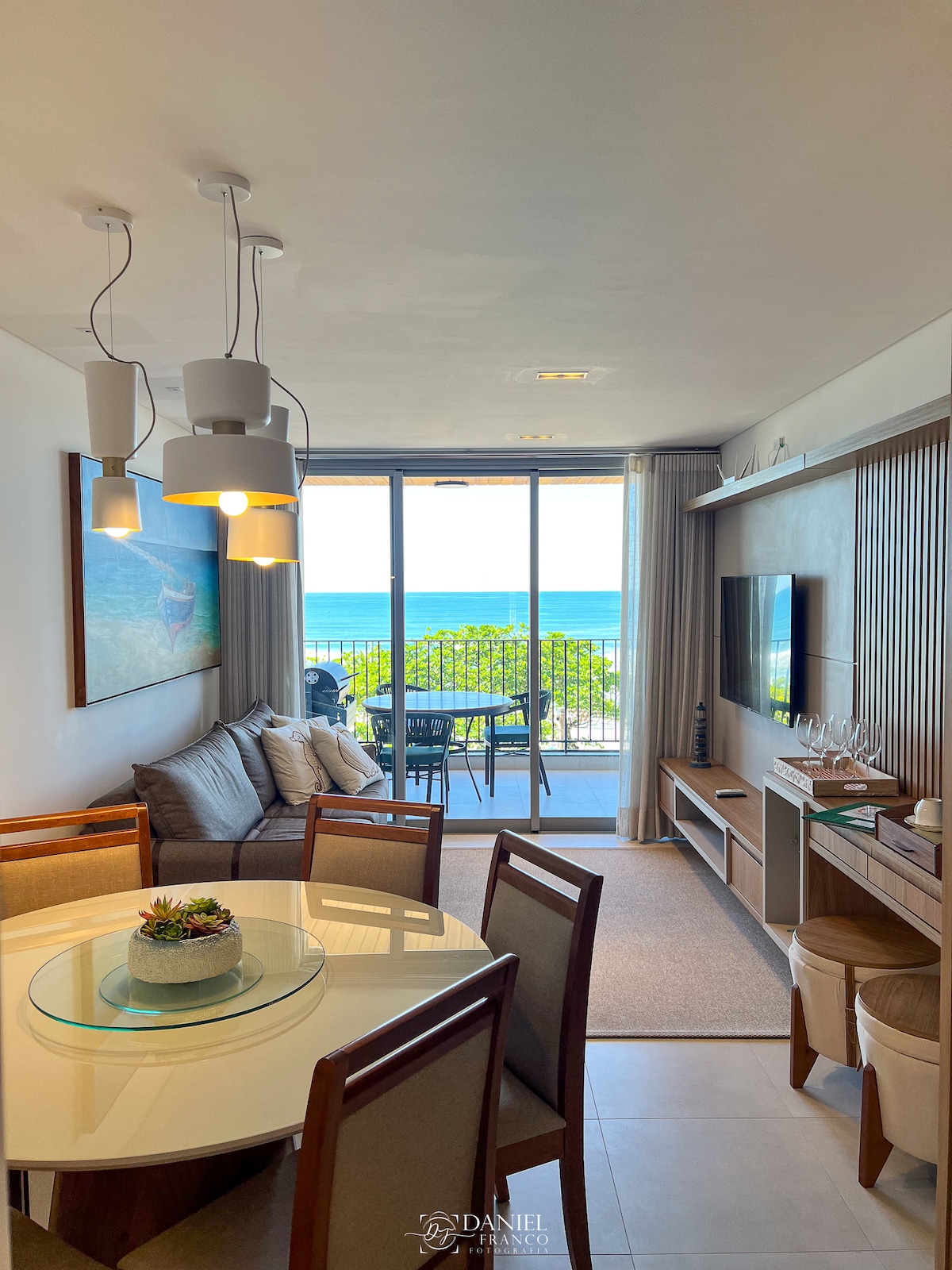 Relaxe com toda a família neste resort de luxo. A suíte tem o privilégio da vista para o mar direto da cama. Assim, a praia é a primeira coisa que verá ao abrir os olhos, além do prazer de dormir ao som das ondas quebrando na areia. Nade na piscina, enquanto vislumbra o azul do mar. Vá e volte da praia várias vezes ao dia, sem necessidade de pegar carro e enfrentar trânsito. É a praia com melhor infraestrutura da cidade, com mercados, restaurantes, padarias, farmácias bem pertinhos de você. :)