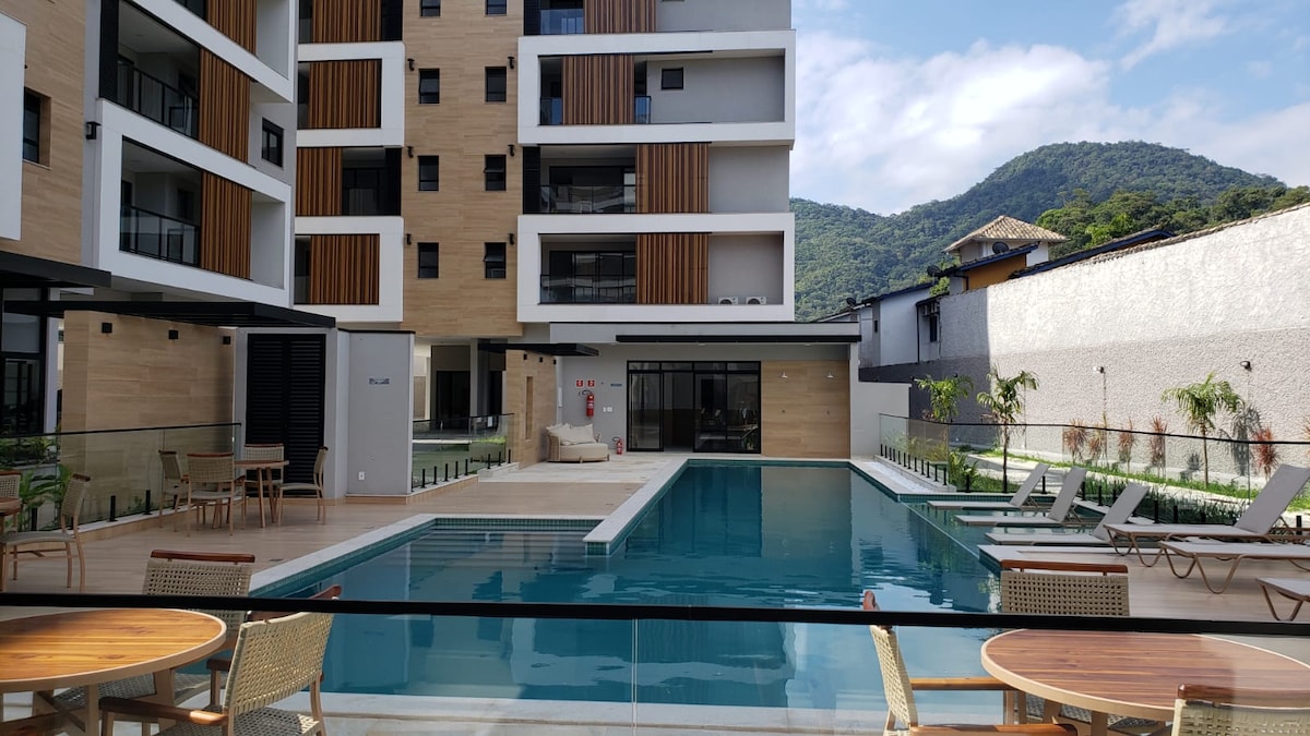 🌴Alpha Easy 🌴 Apartamento sofisticado, totalmente planejado e completo. Ambientes climatizados com ar-condicionado no quarto e na sala, garantem o máximo conforto. Localizado no Itaguá, o condomínio oferece lazer completo com piscina, academia, sala de jogos e área de jantar externa. Um espaço elegante, moderno e com localização privilegiada, perfeito para quem busca praticidade e sofisticação em Ubatuba. Durante toda sua reserva terá acesso: 🔹Piscina no Terraço 🔹Academia 🔹Sala de Jogos