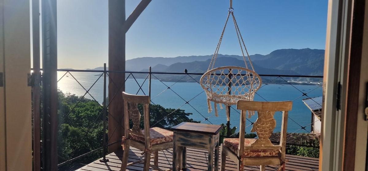 Relaxe à beira-mar com linda vista mar, jacuzzi privativa e acesso a uma praia no quintal, praticamente privativa – acessível apenas por nossos hóspedes ou por barco. O espaço combina charme rústico com conforto, perfeito para casais que buscam uma experiência única em Ilhabela. A espaço conta com: ✨ Jacuzzi com vista para o mar 🍽 Cafeteira, sanduicheira, microondas e frigobar 🌅 Deck com vista mar 🏝 Acesso direto à praia – um paraíso só seu