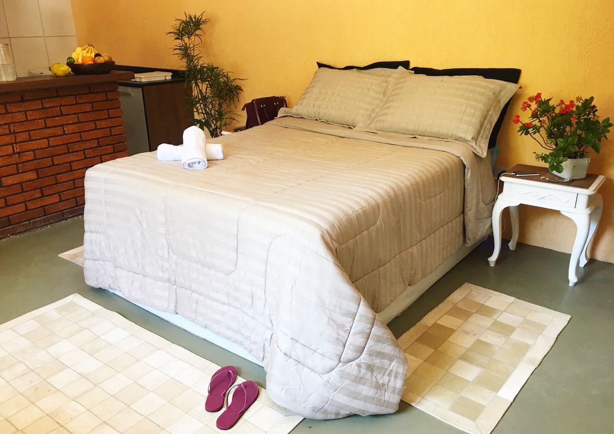 O Quarto Luxo é equipado com cama Queen Size, Smart TV 32″, ar-condicionado, frigobar, banheiro privativo, amenities e roupa de cama e banho. Acomoda 3 pessoas. Os quartos possuem rede de descanso e foram decorados com muito capricho para trazer todo aconchego.