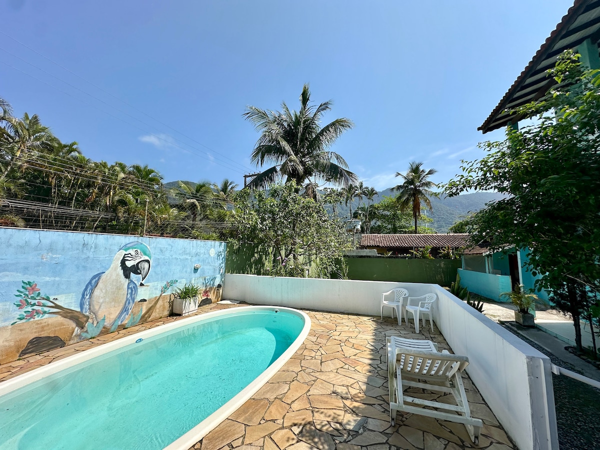 - Casa belíssima, a 650m da praia de São Francisco - Piscina, rede, terraço com vista para o mar em meio à Mata Atlântica - Lareira para as noites frias - Quatro dormitórios que acomodam até 9 pessoas - Churrasqueira e cozinha completa para o preparo de suas refeições - TV smart com Sky - Roupas de cama e toalhas inclusas - Cadeiras de praia e guarda-sol - Garagem para 2 carros