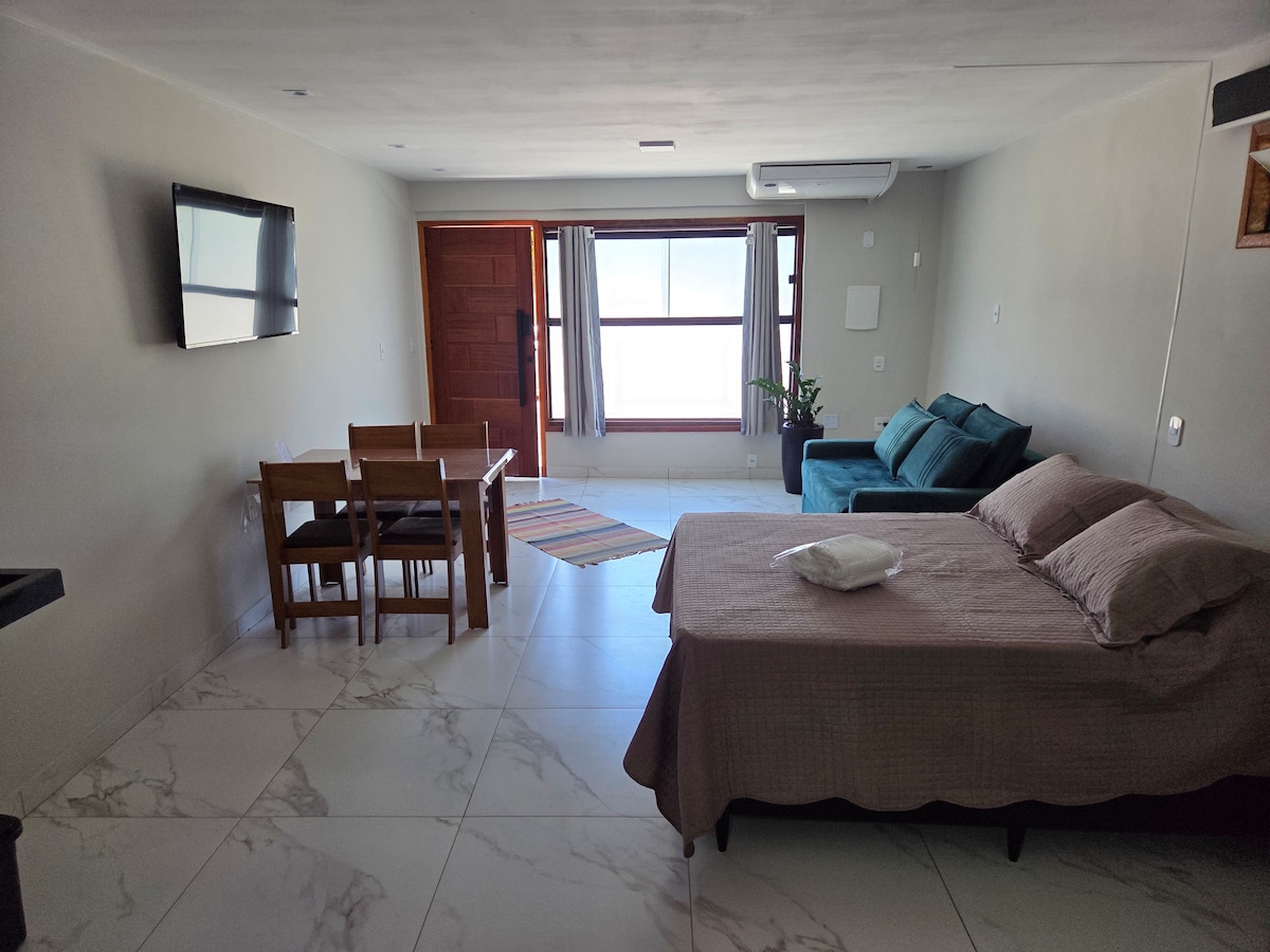 Quer passar alguns dias em Búzios? Próximo ao Centro Gastronômico Porto da Barra? Nós temos o que você precisa. Loft com suíte, sala e cozinha com acomodações para até 3 pessoas com uma cama de casal e um sofá cama. ATENÇÃO! Taxa extra para o 3° hóspede.