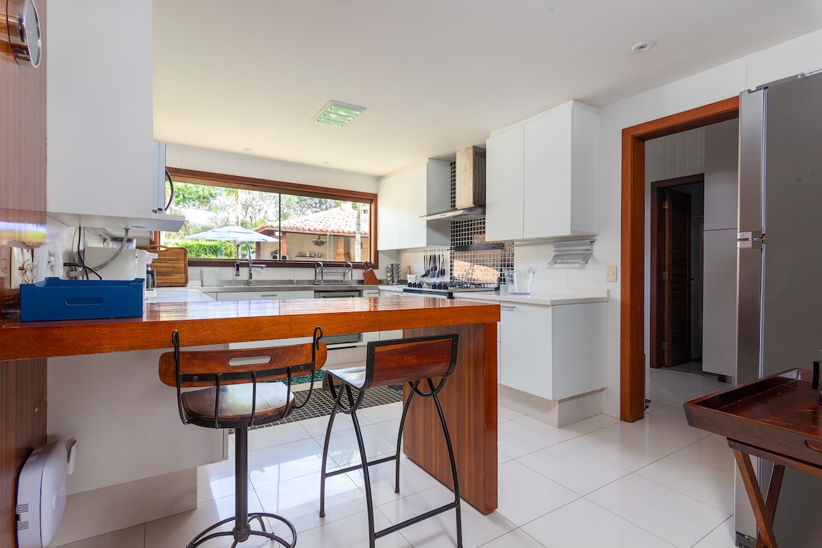 Casa com influência das vilas balinesas, rústica mas extremamente aconchegante e refinada, com tudo do mais alto padrão, móveis, eletrodomésticos, roupas de cama e banho. Área gourmet dos sonhos com churrasqueiras a gás e a carvão, forno a lenha, cooktop e defumadora. Spa com 1,4k litros aquecido, sauna toda em pedra hijau com vista panorâmica da floresta. 5 enormes telas, 2 delas de 75". Equipamentos Elettromec, Kitchen Aid, Le Creuset. Internet 500 Mb. Paraíso para os amantes da gastronomia!