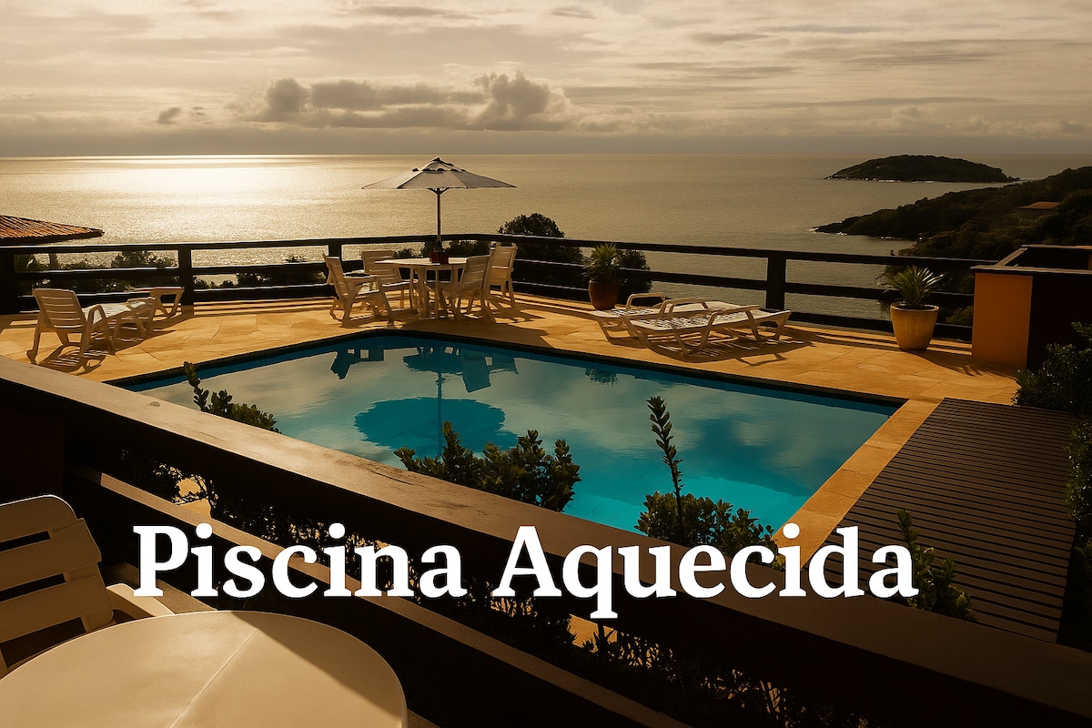 Essa casa de verão fica localizada na Enseada do Albatroz, entre a Praia de Geriba e da Ferradurinha. (13 min a pé ) 1 suíte + 2 quartos, todos com ar condicionado split, piscina com borda infinita e vista mar. Hidromassagem ( ofurô ) 5 pessoas, com aquecimento e cromoterapia, sauna e spa para massagens e churrasqueira. Cozinha completa. Pátio gourmet com lareira. Roupas de cama e toalhas de banho são fornecidas, além de shampoo e condicionador.