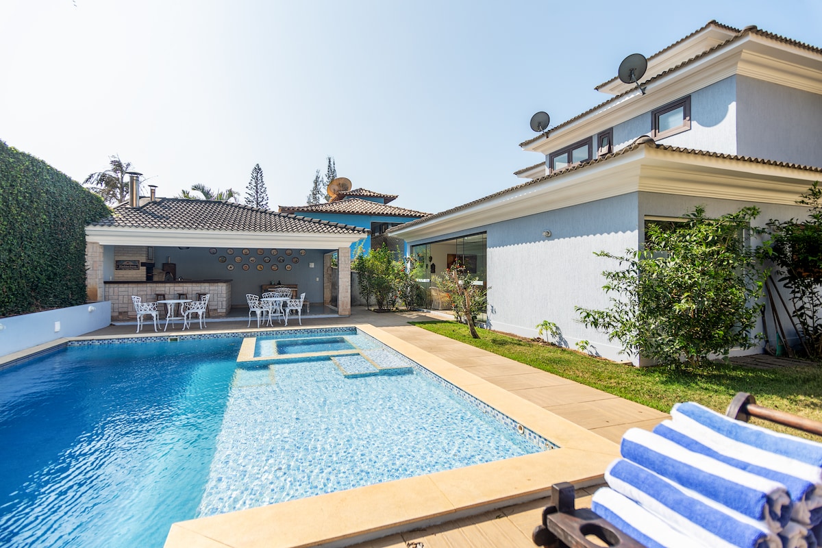 A Villa Dona Flor Ferradurinha é a casa dos sonhos em Buzios, entre a Praia dos Amores, Ferradurinha e Geriba. Desfrute de piscina aquecida com incrível vista mar, área gourmet, churrasqueira e cozinha completa. 600m2 de àrea construida e 2000m2 de terreno privativo com gramado e lindo jardim. 5 quartos sendo uma suite master com jacuzzi. Todos com ar split, roupa de cama e toalhas. Sala ampla com sinuca, tv, lareira. Indicamos funcionaria. Aceitamos pet. Vaga pra 5 carros. Alto padrão.