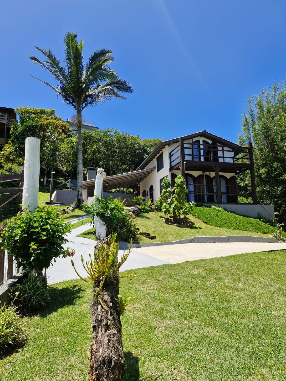 Casa no Morro da Praia da Ferrugem com uma vista linda do morro e da Praia Central de Garopaba ao fundo. A Casa é nova, com tudo novo, tem estacionamento para até 3 carros, gramado e varanda espaçosa integrada com sala e cozinha, conectando a vista e a natureza ao redor. Muitos pássaros, ar puro, paz, em um lugar calmo, tranquilo e próximo de tudo: Praia da Ferrugem - 2km Praia da Silveira - 6km Centro Garopaba - 5km Praia do Rosa - 15km Aeroporto de Florianópolis - 89km