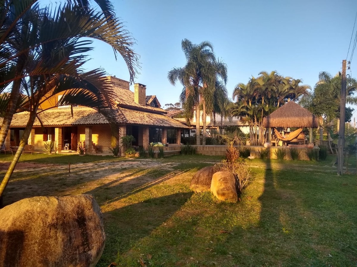 Casa linda no morro ( Caminho do Rei) vista panorâmica para o Rosa Sul e Rosa Norte, casa completa com toda a estrutura necessária para sua estadia ou da sua família.A casa está localizada em um terreno de 2.000m2 cercado por árvores nativas e muita privacidade, é um local silencioso em meio a natureza e ao mesmo tempo a 5 minutos de caminhada do centrinho e 15 min da praia.