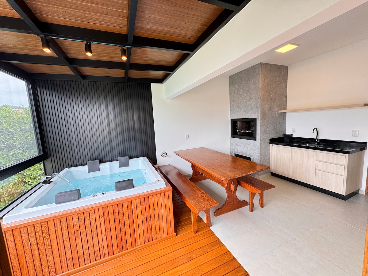 Nosso espaço é pensado para nossos hóspedes. Possuimos um espaço com 1500m², local seguro, casa completa e equipada, mesa de sinuca, piscina aquecida, área de jacuzzi de hidromassagem, acesso à lagoa privativo, prancha de standup paddle, caiaque etc. Nossa localização é privilegiada por belezas naturais, estamos localizados a cerca de 2km da Praia do Rosa, mas além desta linda praia, há outras lindas praias também na região, como Praia do Ouvidor, Praia da Barra de Ibiraquera, Praia do Luz, Etc…