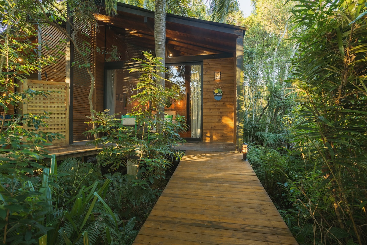 Na Cabana Ouvidor, você viverá uma experiência de conexão total com a natureza. Imagine acordar ao som dos pássaros e saborear um café na varanda, rodeado por árvores e o frescor da manhã. O espaço está localizado no Condomínio Maranata, com acesso exclusivo à Lagoa de Ibiraquera, oferecendo um pôr do sol deslumbrante. Além disso, está em frente à SURFLAND BRASIL. Estamos a apenas 5 minutos de carro da Praia do Ouvidor e Praia Rosa Norte.