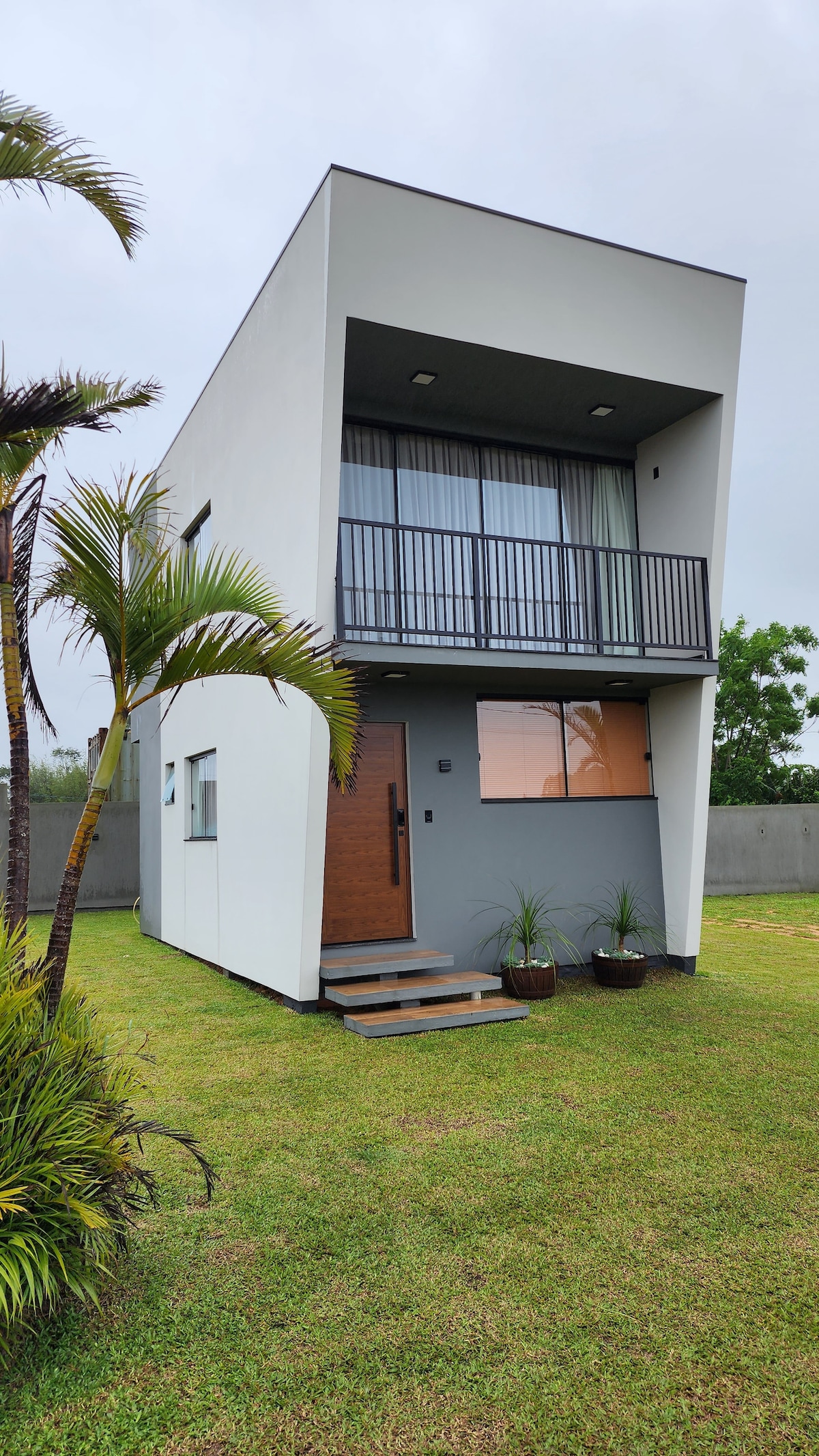Casa a beira mar construída em dezembro de 2021 acomoda até 6 pessoas, com pé direito alto e com ambientes que se integram com toda comodidade e conforto. Quartos grandes e arejados todos com ar-condicionado, Cozinha Completa com sala de jantar, Lavanderia com Máquina de Lavar, TV a Cabo, NetFlix, e WI-Fi fibra com 300 mega. Tudo isso a beira mar no Canto Norte da Praia da Ferrugem.