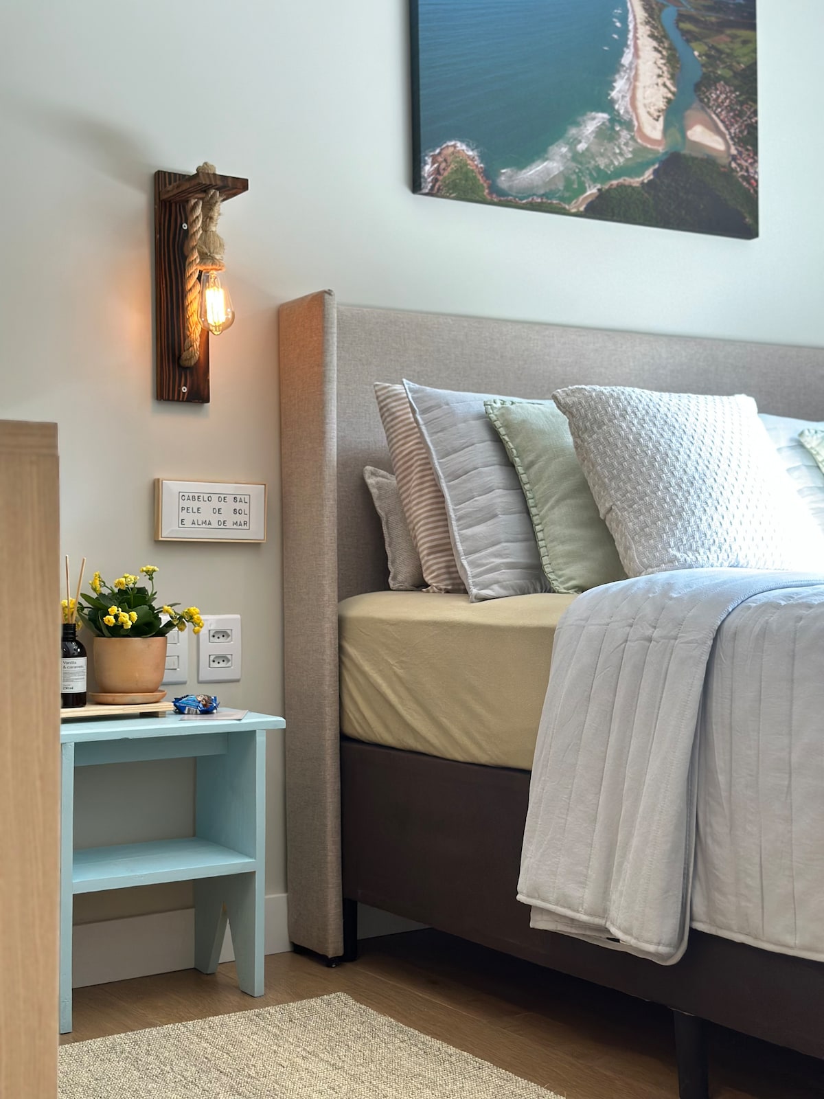 Essa acomodação fica no andar superior e é decorada com muito carinho e cuidado, e cada detalhe foi pensado para deixar sua estadia mais gostosa. É um espaço perfeito para quem está procurando um cantinho para curtir em meio à natureza e próximo ao mar. Possui janelas amplas, com deck em frente que dá vista parcial do mar e das montanhas. Disponibilizamos cadeiras de praia, guarda sol e saca areia, além de toalhas para uso na praia.