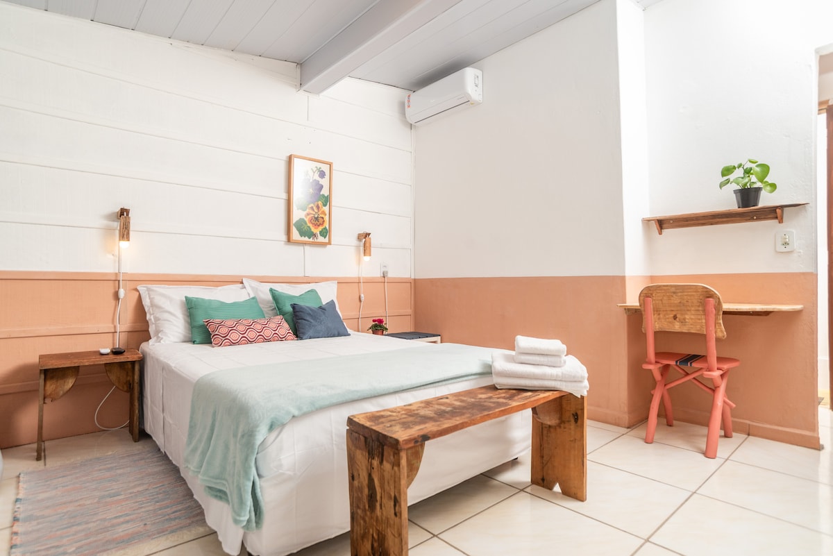 Bem-vindos ao Quintal do Mar! Um refúgio tranquilo na Praia da Pinheira, pensado especialmente para casais que querem descansar perto do mar, com conforto e simplicidade charmosa. Nossos studios são completos, acolhedores e preparados para que você aproveite os dias de descanso sem preocupações em um espaço silencioso, agradável e pronto para relaxar.