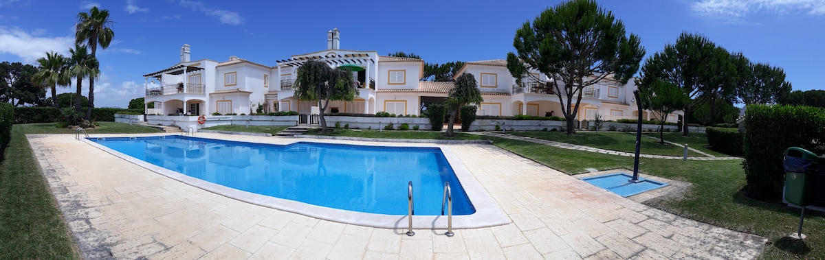 T2 apart in a private condominium; Bedroom with a king-size bed, en-suite bathroom; 1 twin bedrooms with shower rooms; 1 living rooms; Large terrace; 2 private pools; Kitchen is fully fitted; Parking in front of the house - 4 min - restaurants, supermarket, pharmacy, etc. - 6 minutes walk to the beach. - 7 min walk to the center of Olhos Dagua - 8 min walk to the local Best Deal car rental office. - 10 min - Pine Cliffs golf course. - 10 min drive to the center of Albufieira or Vilamoura Marina