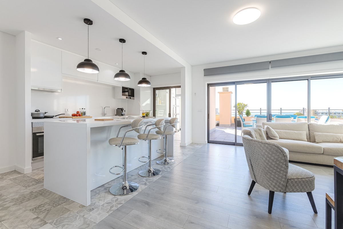Nestled in an upscale beachside area, our spacious contemporary apartment enjoys a prime position, an easy stroll to the beach of Porto de Mós and its two renowned restaurants. Our south facing apartment has wonderful ocean views from its 60 square meter terrace which has direct access, via a private gate, to a large outdoor pool as well as indoor pool, sauna, jacuzzi and gym. Inside, no expense has been spared to create its exclusive design with high quality furnishings giving a luxurious feel.