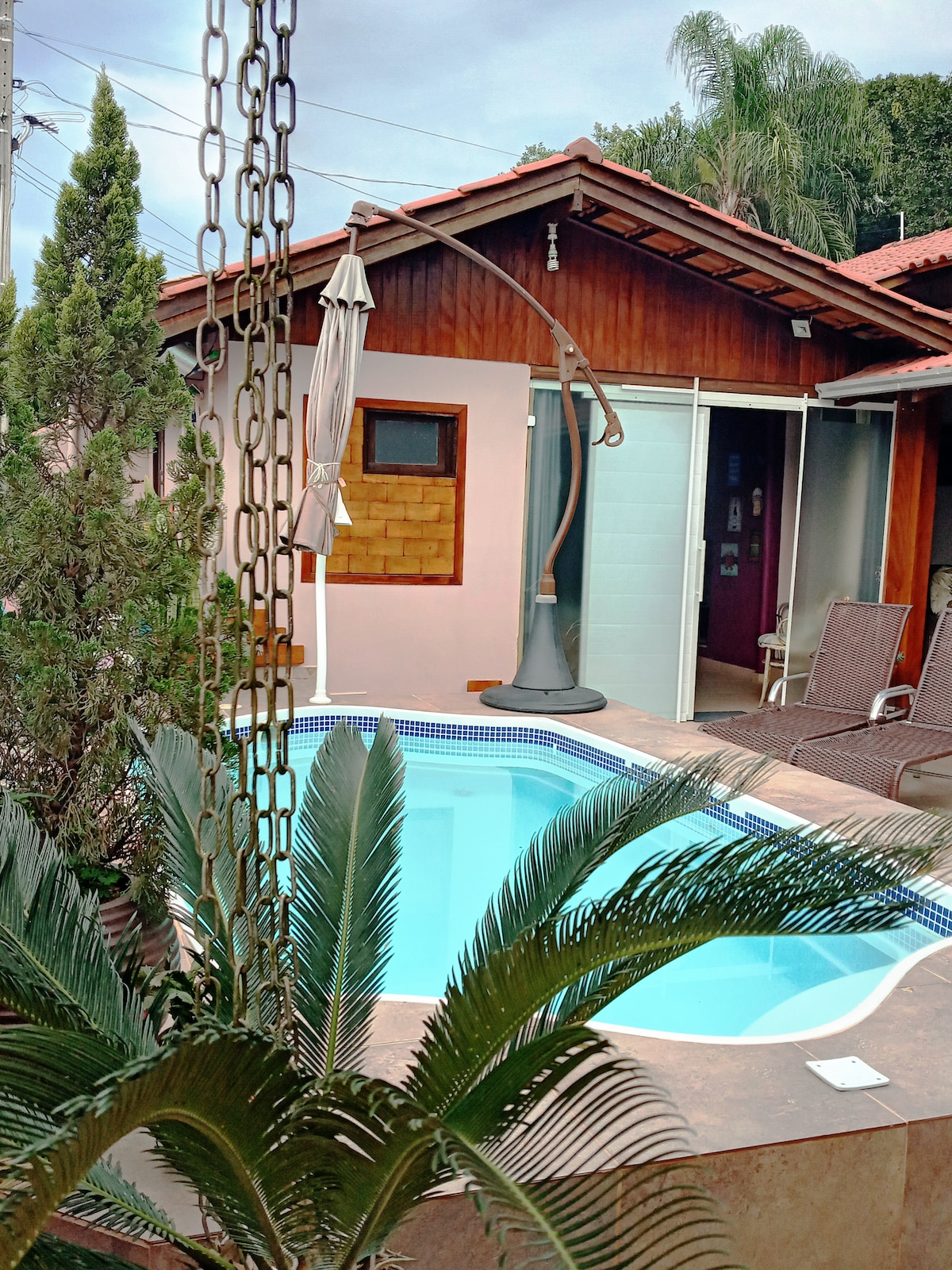 Casa com piscina, área gourmet com lavabo, churrasqueira, smart Tv, som e cozinha completa, 3 suítes e mais 1 quarto. Sala com Tv por assinatura, Netflix, Disney+, Globoplay, HBO max e net 1000gb Wi-Fi na casa inteira e internet cabeada em todos os quartos e sala de Tv, chuveiros e torneiras com aquecimento, pátio para dois a três carros, segurança e muito conforto nossa maior prioridade.