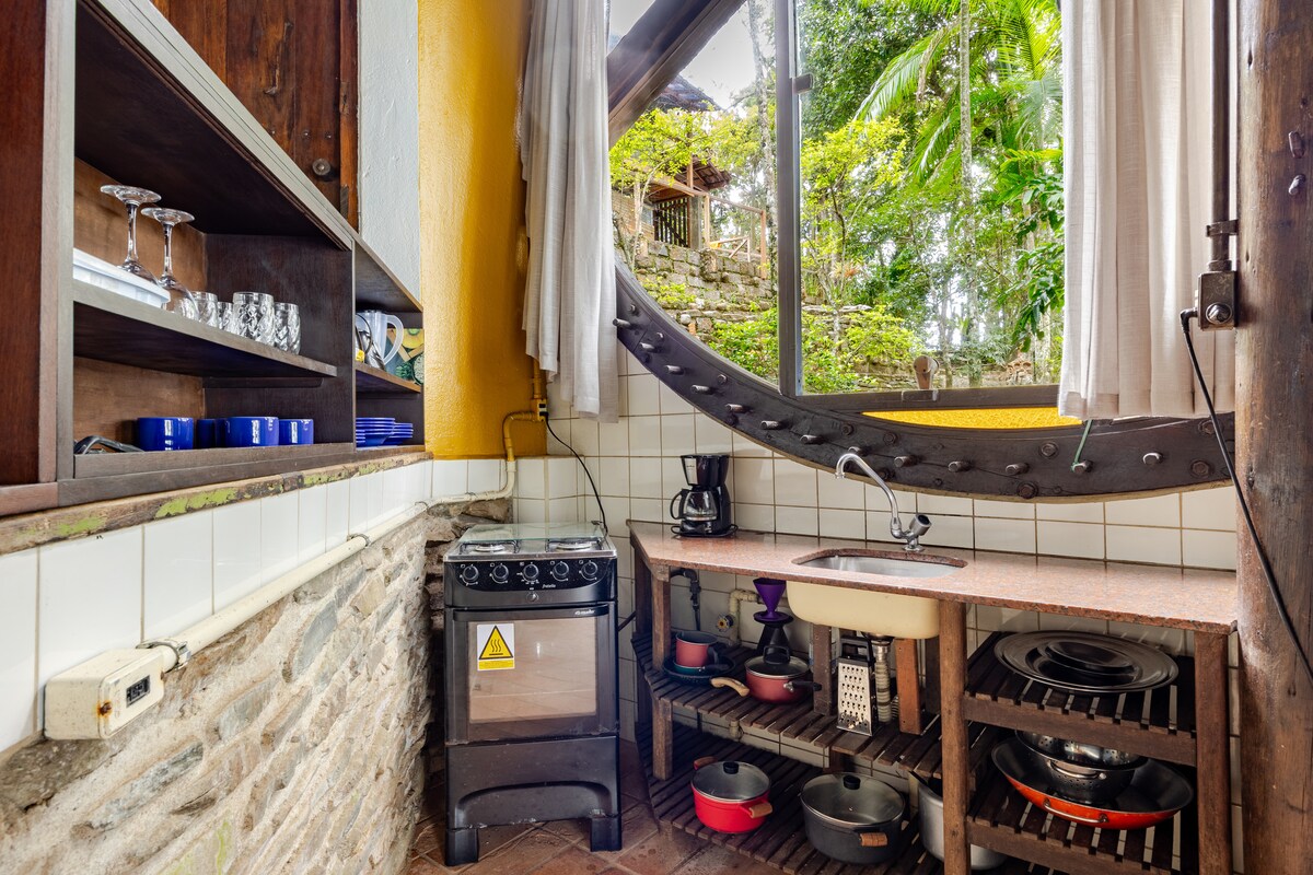 Experiência única para casais que buscam um refúgio privativo com uma interação total da natureza. A nossa casa é planejada com conceito ecológico sem abrir mão de todo conforto para você descansar e recarregar energias. Prepare-se para estar imerso na natureza do morro, com vista fenomenal para mata Atlântica e desfrute do silêncio em sintonia com os sons dos pássaros! Distando apenas 15 minutos da praia a pé e dos restaurantes e mercados.