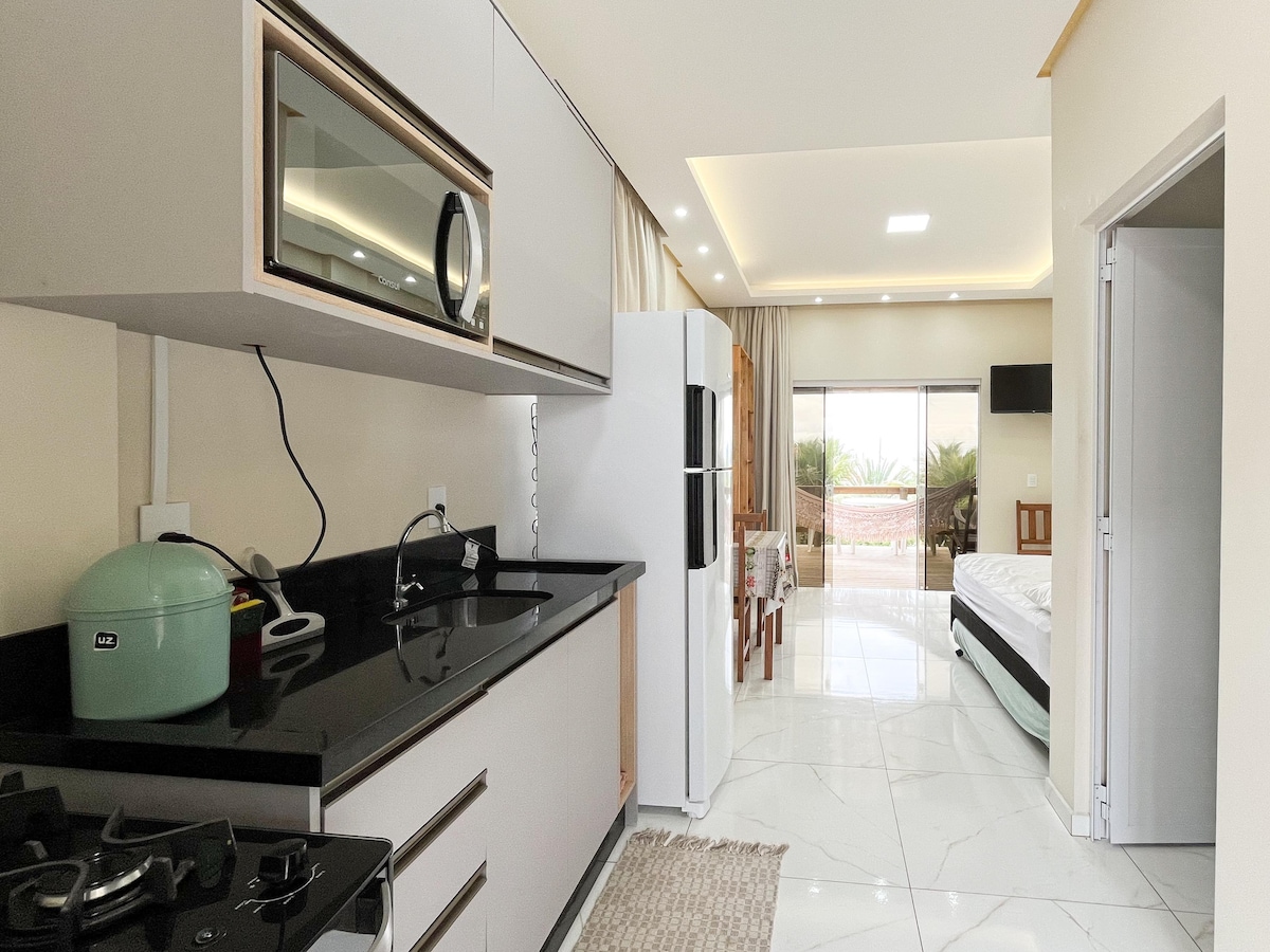 Ótimo apartamento a beira mar da Praia de Mariscal com acesso privativo a praia 1 Suíte com cama casal Cozinha e sala integradas Cozinha com utensílios básicos (panelas, pratos, copos, talheres..) Sofá cama na sala Ar-condicionado no quarto e sala Sacada com churrasqueira Wi-fi disponível como cortesia Cafeteira DolceGusto (não fornecemos capsulas) Itens de praia como Cadeira e Guarda-sol É aceito somente um pet de pequeno porte, informar na reserva