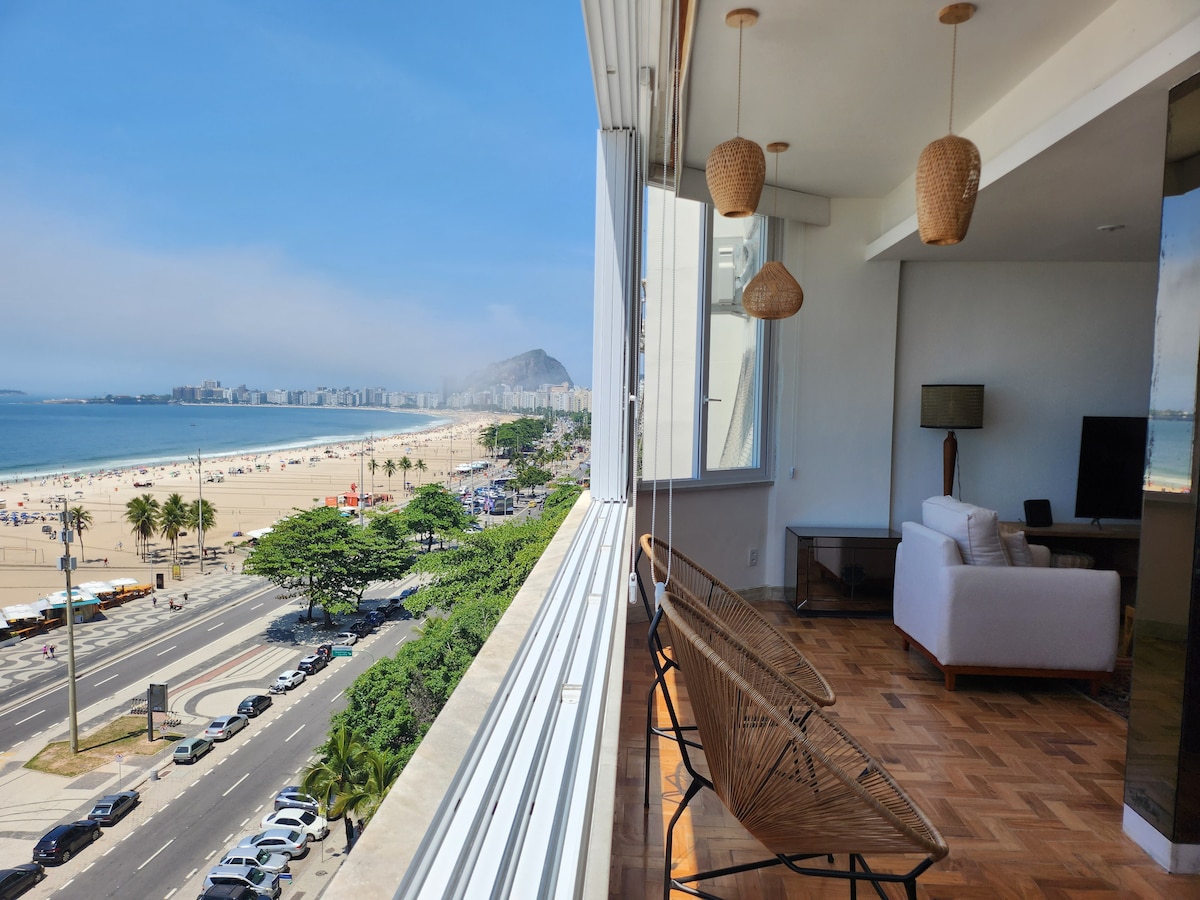 - Luxurious apartment facing the sea, on Copacabana Beach with a gorgeous view. Fully renovated with everything 100% new. Large, comfortable and extremely well located. Surrounded by bars, restaurants, markets, banks, pharmacies and etc.