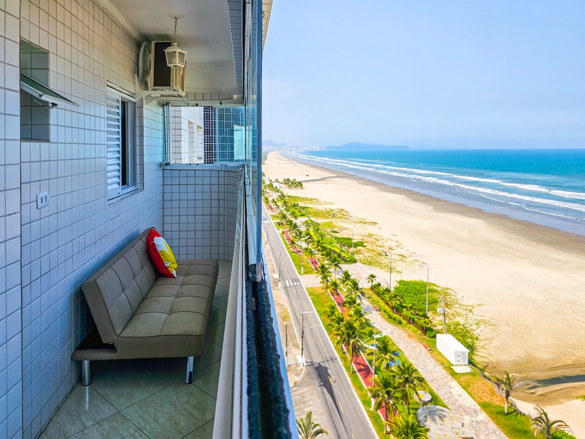 Apê Vista Mar c/ Varanda Chef + A/C + Vaga e Wi-Fi