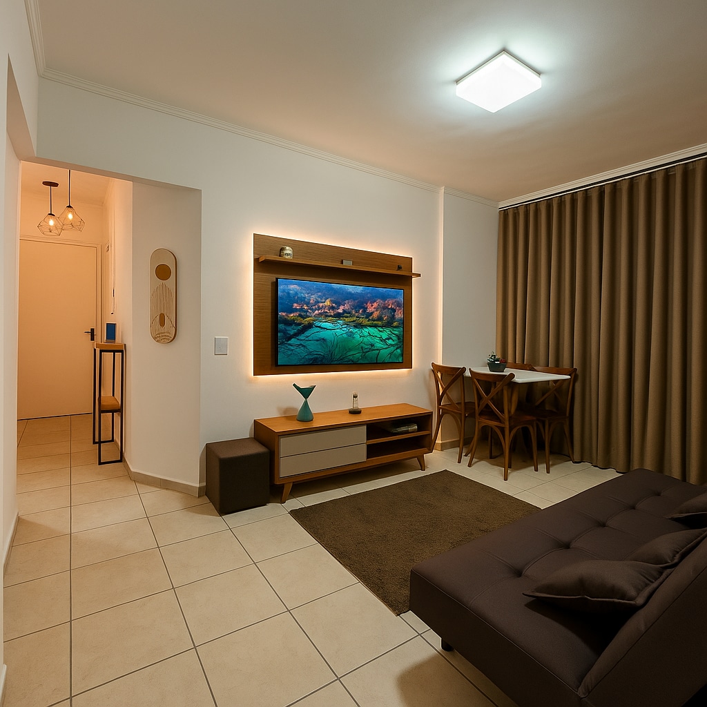 Muito conforto e comodidade para você e sua família se sentirem em casa . Além da cama Queen no quarto, tem mesa de escritório com cadeira confortável, caso precise trabalhar (Wi-Fi de alta velocidade ) ,televisão de 40 polegadas ,ar condicionado no quarto. Tábua e ferro de passar roupa . Roupa de cama, travesseiro e cobertor. Na sala, televisão 4k e Wi-Fi com 300 megas . Ventilador de teto , sofá retrátil e uma bicama com colchões confortáveis e mais 2 colchões avulsos.