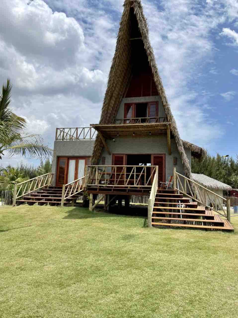 Uma casa com um ar de rusticidade e conexão com a natureza pra deixar tudo mais agradável. A casa conta com espaços amplos, 3 andares e uma área de convivência adorável. Ar condicionado ,frigobar e tv na suíte principal, na outra temos climatizador e camas de solteiro. Cozinha com fogão, geladeira, microondas. Temos um mirante com uma vista incrível para ser apreciada de uma redinha. Estamos bem localizados a poucos metros da praia ,tudo pode ser feito a pé. Não temos estacionamento.