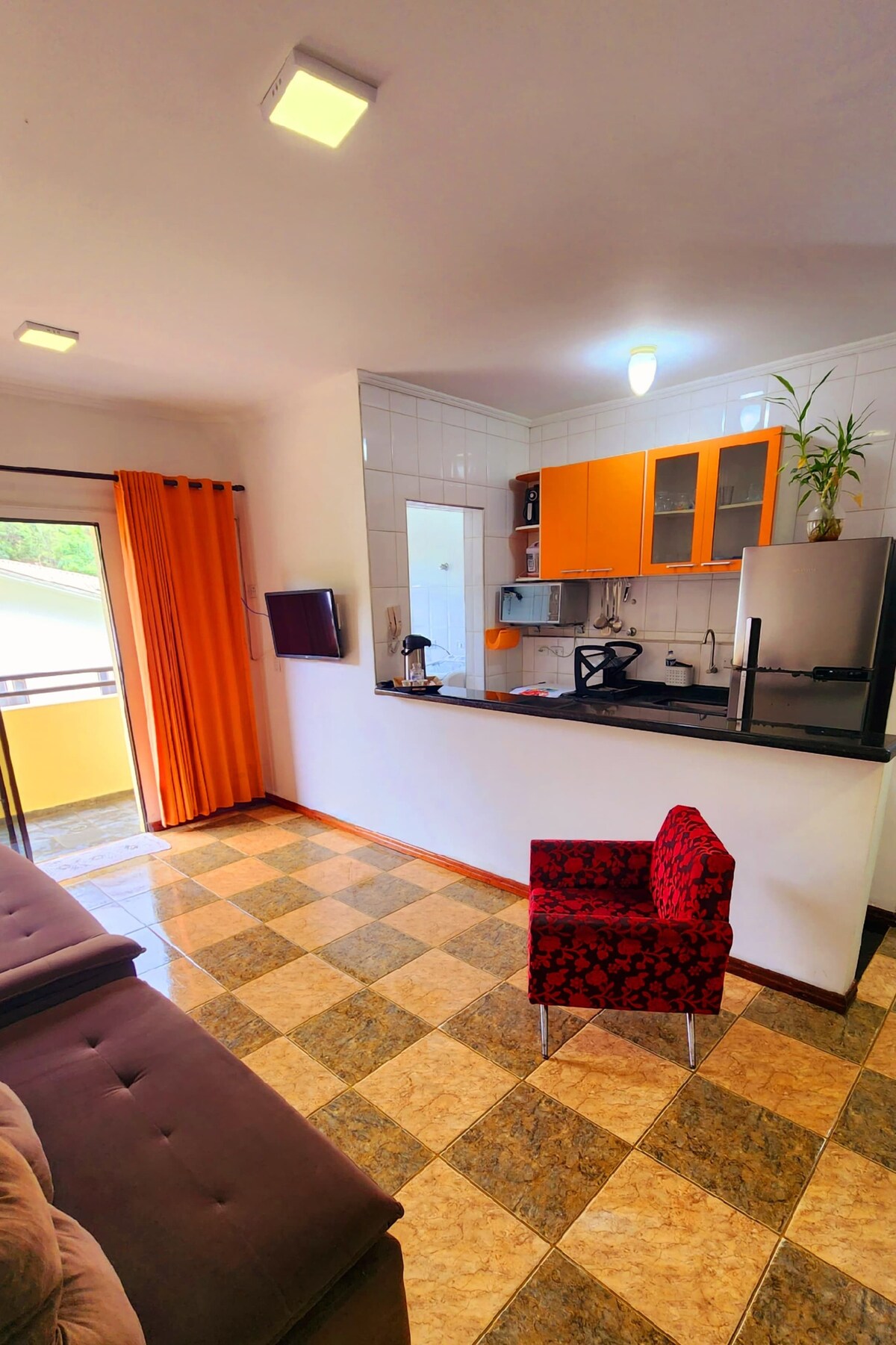 Apartamento novo/reformado, com vista incrível para o mar na melhor localização de Ubatuba. Perto de tudo e ao mesmo tempo em meio a natureza. 1 quarto com cama de casal e vista para o mar Sala integrada com a cozinha Piscina no condomínio. Ar condicionado Wi-fi rápido de 200mb Vaga de garagem Portaria 24h Fica na Prainha do Matarazzo e a 5 minutos da Praia do Perequê-Açu. Moderno e com uma vista paradisíaca. Por estarmos próximos ao Café de La Musique, pode ter barulho nos finais de semana.