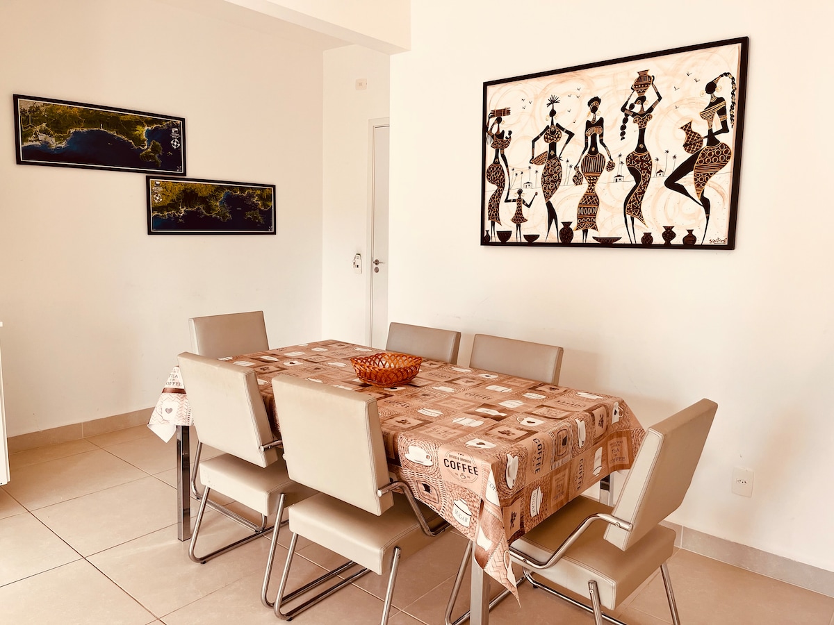 Apartamento completo que vai lhe oferecer conforto e tranquilidade,o apartamento possui ar condicionados nos 2 quartos e na sala, lhe proporcionando mais conforto, fornecemos cobertas, roupas de cama, toalhas de banho e travesseiros, cozinha completa com filtro de água com opções gelada e natural,lavanderia com maquina de lavar. A praia fica em torno 100 metros lhe dando a tranquilidade de deixar o seu veículo na garagem.O apartamento acomoda 7 pessoas incluindo crianças acima de 2 anos.
