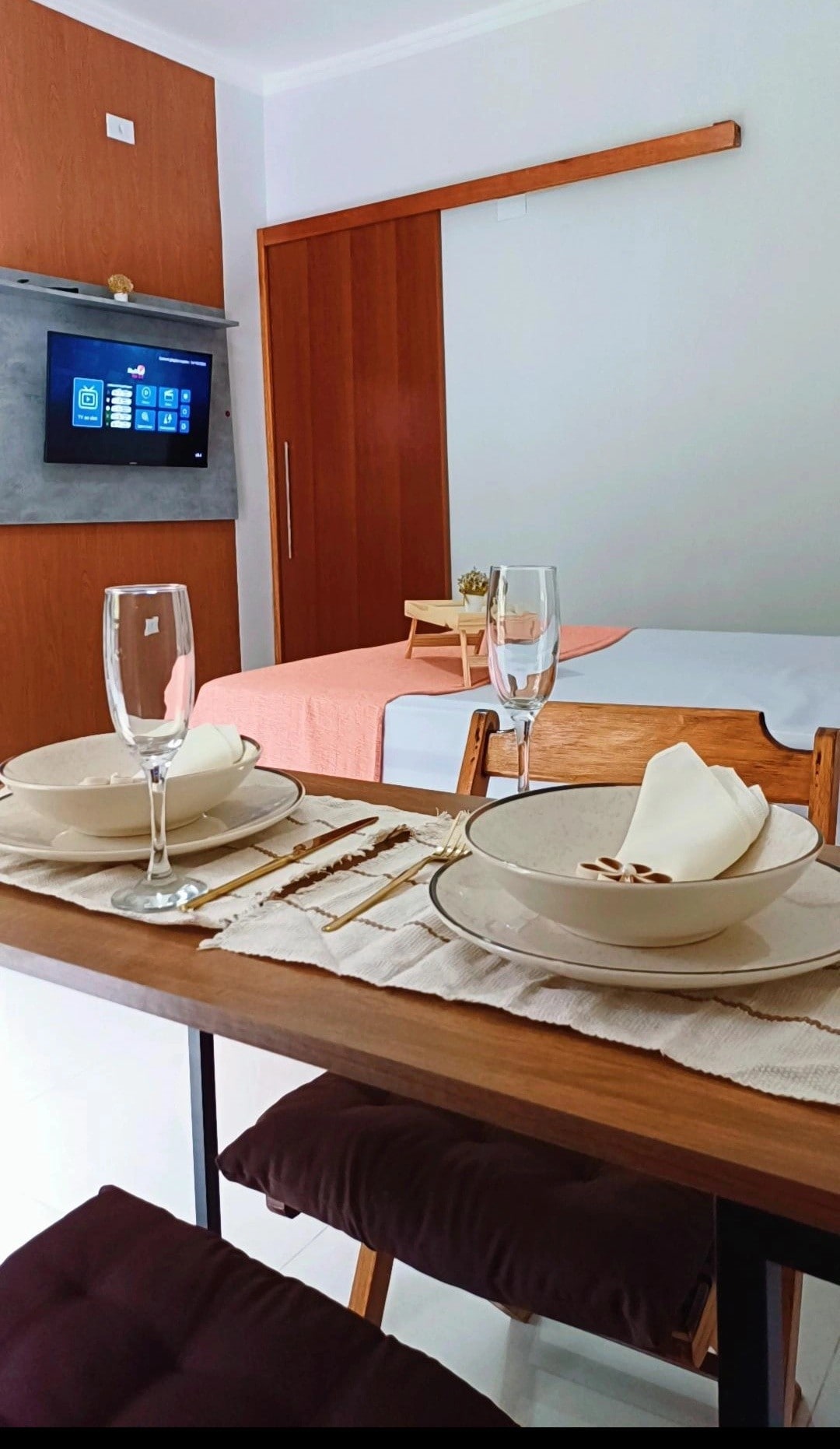 Studio 409 é simplesmente encantador. Fica no quarto andar. Com tons cor de rosa, criando uma atmosfera romântica e delicada. Belissimamente decorado, aproveitando cada espaço, com planejamento dos móveis finamente acabados. Conta com uma vista privilegiada, área gourmet com churrasqueira, cozinha completa, tv smart, ar condicionado, cama queen para maior conforto. O condomínio dispõe de área de lazer com piscina no 5 andar. Temos estacionamento. ATENÇÃO NÃO FORNECEMOS LENÇÓIS E TOALHAS