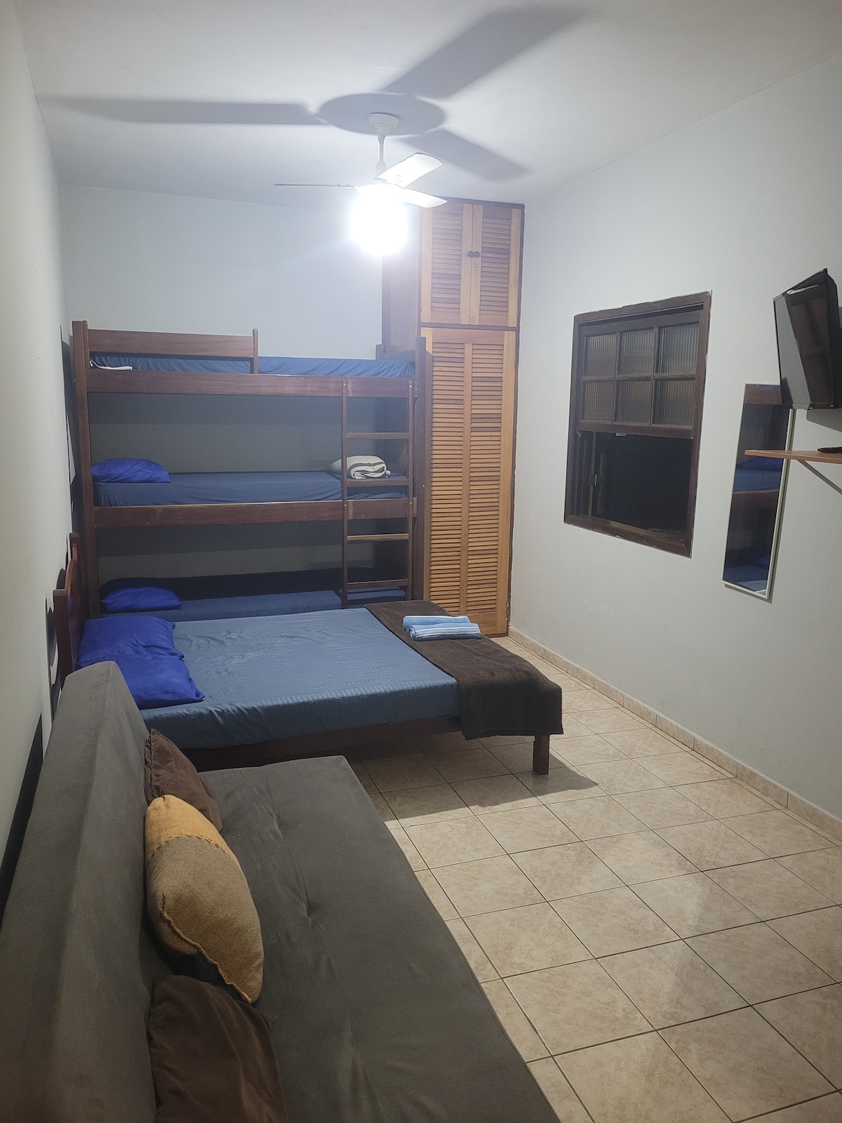 Flat em andar superior (acesso escadas) com 1 dormitório, 1 banheiro e cozinha equipada com utensílios básicos. (não tem sanduicheira) TV smart,Internet,cama queen e ar condicionado. NÃO FORNECEMOS ROUPAS DE CAMA, BANHO, MATERIAL DE HIGIÊNE PESSOAL E PRODUTOS DE LIMPEZA *NÃO TEMOS ESTACIONAMENTO FECHADO, SÃO 3 VAGAS ROTATIVAS NA FRENTE DO PRÉDIO, SEM PORTÃO E SEM COBERTURA. DEMAIS VAGAS NA RUA. *HOSPEDAMOS SOMENTE CÃES: desde que especificados no campo animais de estimação.