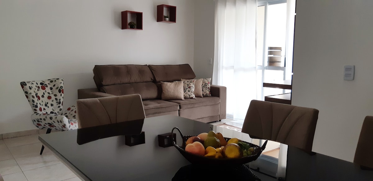 Apartamento completo que vai lhe oferecer conforto e tranquilidade,o apartamento possui ar condicionados nos 2 quartos e na sala, lhe proporcionando mais conforto, fornecemos cobertas, roupas de cama, toalhas de banho e travesseiros, cozinha completa com filtro de água com opções gelada e natural,lavanderia com maquina de lavar. A praia fica em torno 100 metros lhe dando a tranquilidade de deixar o seu veículo na garagem.O apartamento acomoda 7 pessoas incluindo crianças acima de 2 anos.