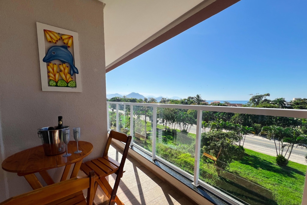 Condomínio pé na areia, ideal para família. Seguro e tranquilo, apto com 01 quarto (1cama queen e 2 sofás cama, cozinha completa com purificador de água, 1 banheiro e varanda. Ar condicionado e TV no quarto e sala. Sacada e quarto com vista para o mar. Condomínio com piscina, sala de TV, WI FI, estacionamento coberto (vaga para 01 carro), 2 portarias com segurança 24 horas, acessibilidade. Restaurante com serviço não incluso na diária. Obrigatório uso pulseira identificação.