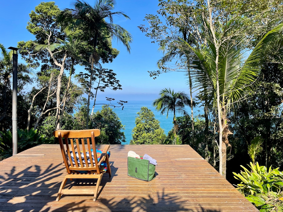 Desfrute de uma estadia acolhedora em uma casa localizada no Condomínio Ponta Grossa, em Ubatuba. Um local com total privacidade, e com uma vista única para o mar, cercado pela mata atlântica. Localizada a uma curtíssima distância das Praias do Cedro e Vermelha do Centro, e a apenas 3,5km do centro comercial de Itaguá.