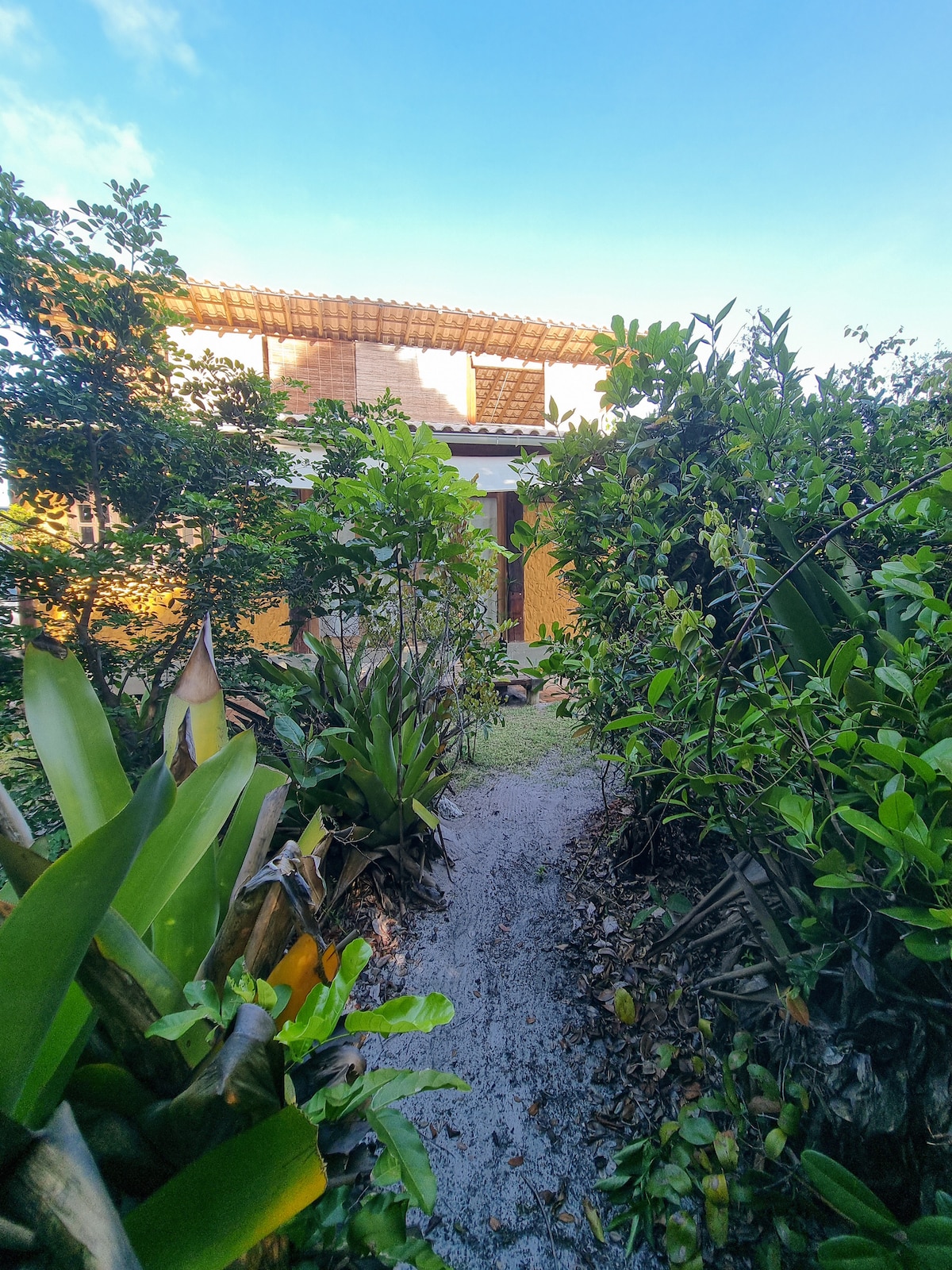 São duas casas extremamente charmosas num mesmo terreno. Local ideal para quem quer relaxar, ama o contato com a natureza e quer o privilégio de estar pertinho de uma praia paradisíaca. É assim o nosso espaço! Estamos num condomínio fechado com acesso exclusivo à praia da Bombaça. Nosso terreno é cercado pelo verde das árvores, colorido pelas flores do jardim e encantado pelo som dos pássaros. Temos redes espalhadas por todo canto, horta cheia de temperos e ervas, agrofloresta e composteira.