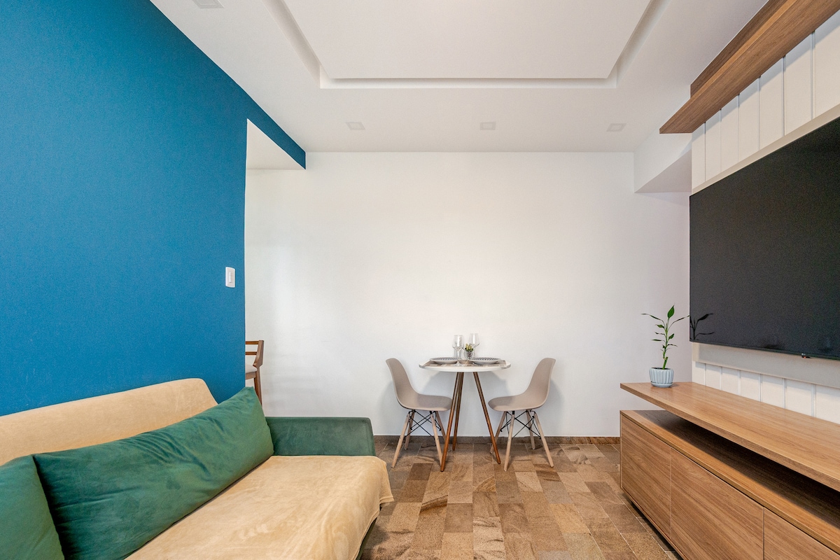 Apê Xodó da Bahia é beira mar aconchegante, compacto, funcional, com ar condicionado no quarto, internet de 350 Mb e vaga de garagem. Localizado no Rio vermelho, numa rua muito tranquila, de frente à belíssima praia do Buracão. Prédio com portaria 24 hs, academia e piscina. Perto de vários pontos turísticos, restaurantes, barzinhos, farmácias, supermercado e ponto de ônibus. Pelourinho - 7 km Aeroporto -25 Km Barra - 6 Km