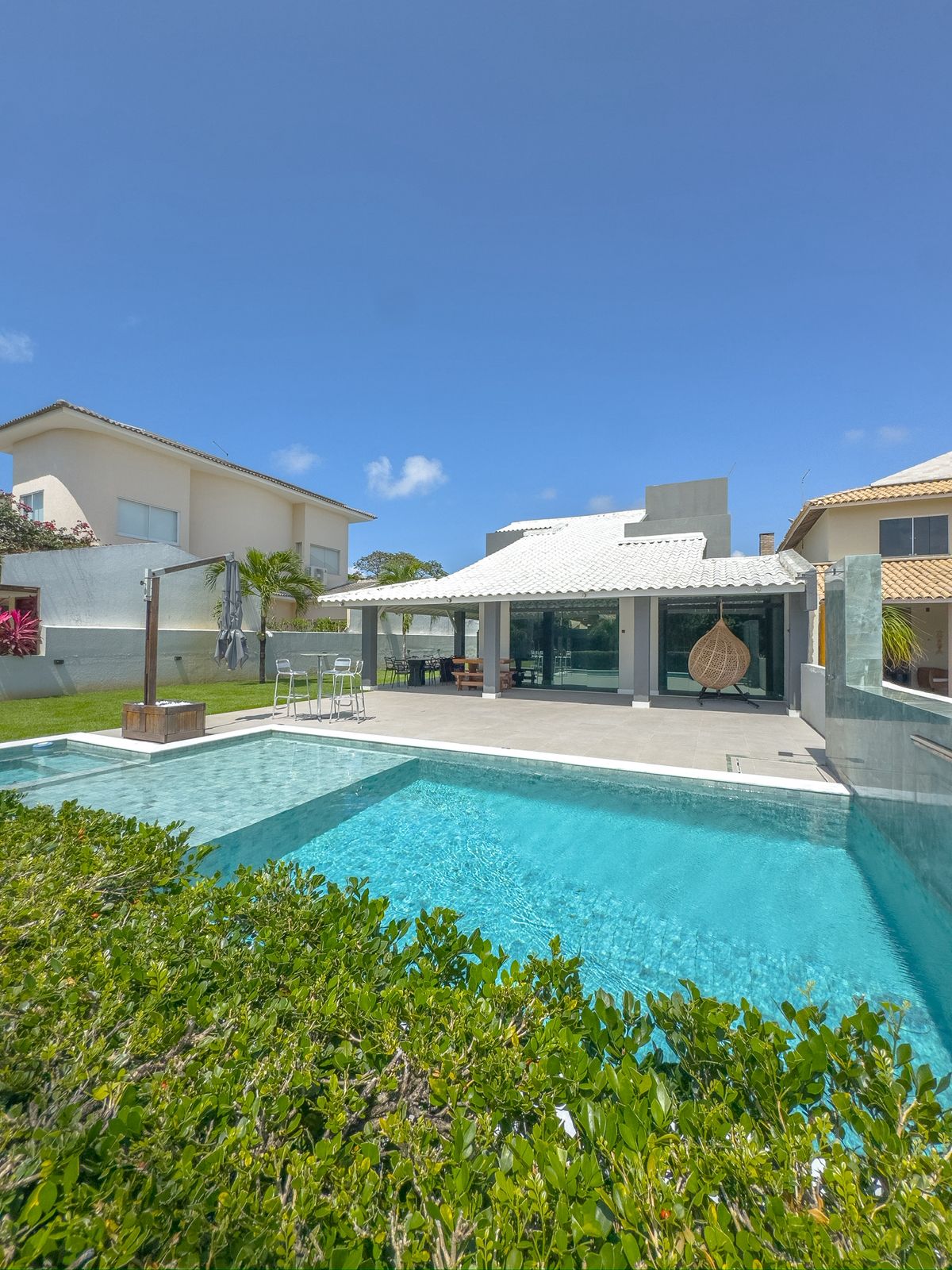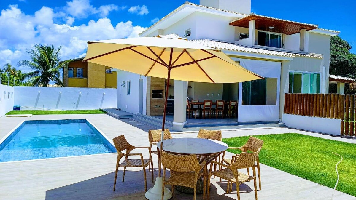 Para uma experiência única de temporada, esta casa é a escolha perfeita com os seguintes destaques: +Sala Ampla, Cozinha equipada, Varanda com Deck de 60m², churrasqueira e cervejeira para animar os dias de sol. Piscina Moderna com hidromassagem e um telão. +4 Suítes Climatizadas, dependência de empregada e área de serviço com máquina de lavar. +Condomínio com campo de futebol, quadras de tênis, beach tênis, poliesportiva e piscina semi-olímpica, acesso à praia com deck particular à beira-mar.