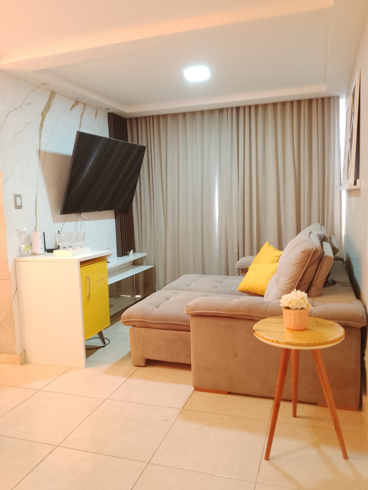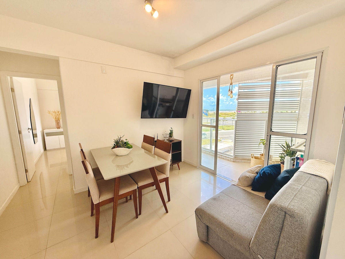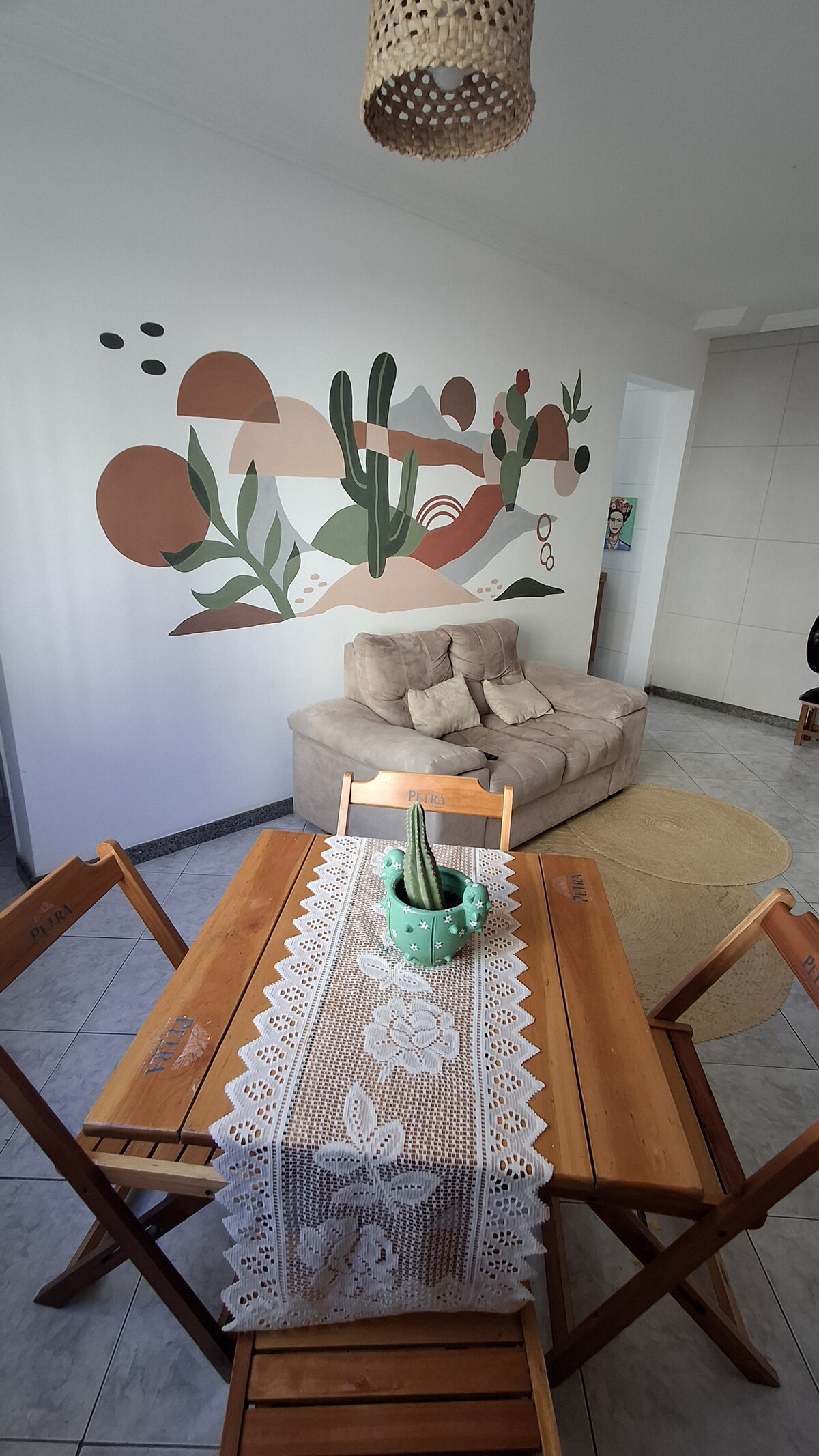 Fully furnished apartment 900m from Atalaia beach, near the Crab Walkway and Cariri, close to the arches on the waterfront. It has 2 bedrooms (one with air conditioning), living room with sofa bed and TV, equipped kitchen (stove, refrigerator, microwave, air fryer and utensils), bathroom and laundry. Accommodates up to 8 people. Offers Wi-Fi, bed linen, towels, mineral water and parking for up to 3 cars.