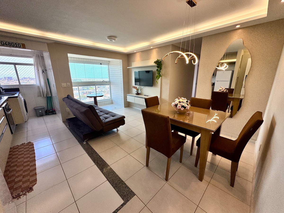 Modern and fully equipped apartment in the heart of Atalaia, featuring 1 suite, an integrated living room, and a balcony with a jacuzzi and panoramic ocean views. Ideal for up to 4 guests, it combines comfort and sophistication. The suite features a double bed, air conditioning, and a balcony. The living room features a TV, sofa bed, and a fully equipped kitchen. The condominium features a pool, gym, sauna, game room, . Energy is charged separately (R$1.50/kWh).